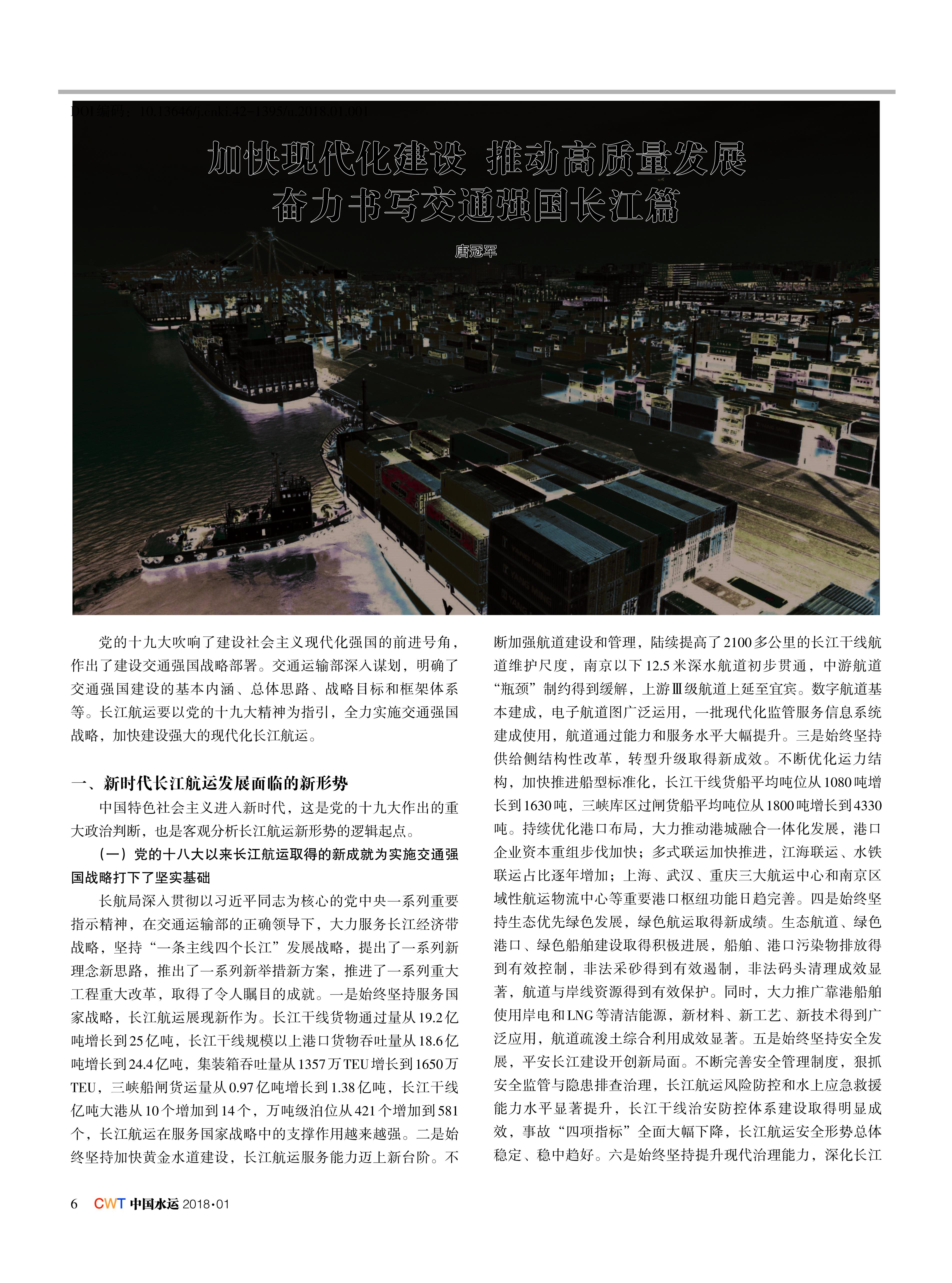 加快现代化建设 推动高质量发展 奋力书写交通强国长江篇