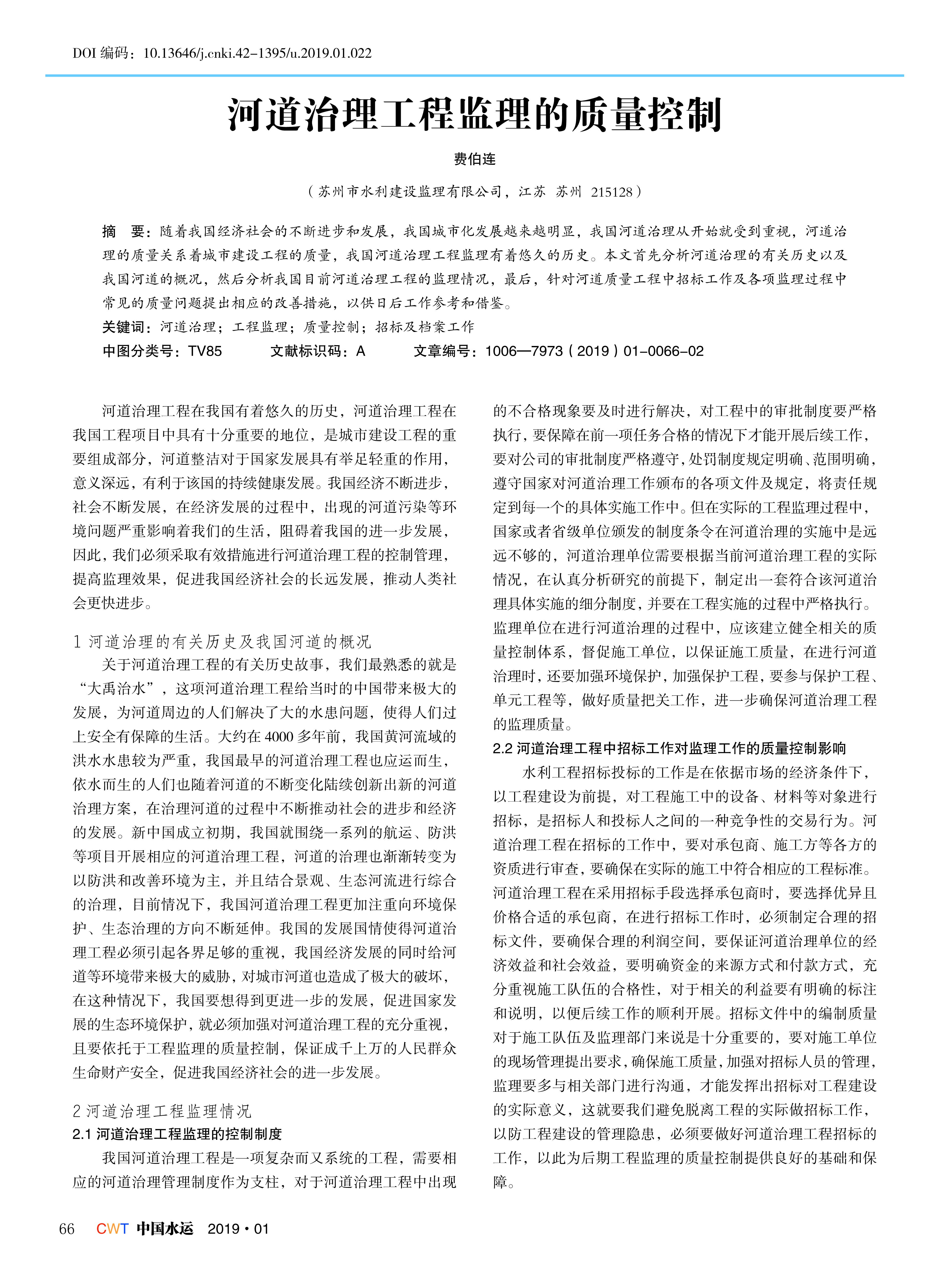 随着我国经济社会的不断进步和发展,我国城市化发展越来越明显,我国河道治理从开始就受到重视,河道治理的质量关系着城市建设工程的质量,我国河道治理工程监理有着悠久的历史。本文首先分析河道治理的有关历史以及我国河道的概况,然后分析我国目前河道治理工程的监理情况,最后,针对河道质量工程中招标工作及各项监理过程中常见的质量问题提出相应的改善措施,以供日后工作参考和借鉴。