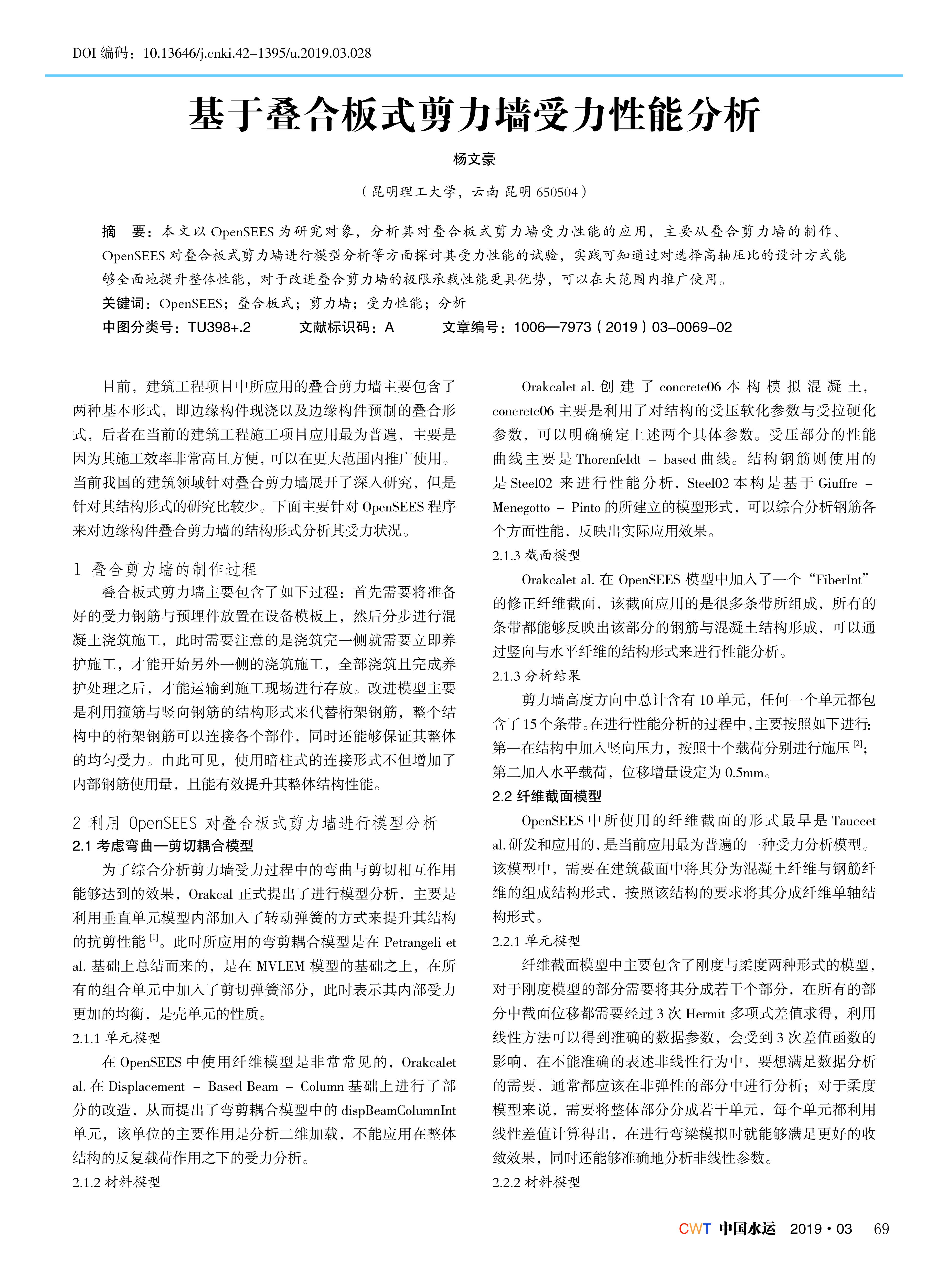 本文以OpenSEES 为研究对象,分析其对叠合板式剪力墙受力性能的应用,主要从叠合剪力墙的制作、 OpenSEES 对叠合板式剪力墙进行模型分析等方面探讨其受力性能的试验,实践可知通过对选择高轴压比的设计方式能 够全面地提升整体性能,对于改进叠合剪力墙的极限承载性能更具优势,可以在大范围内推广使用。