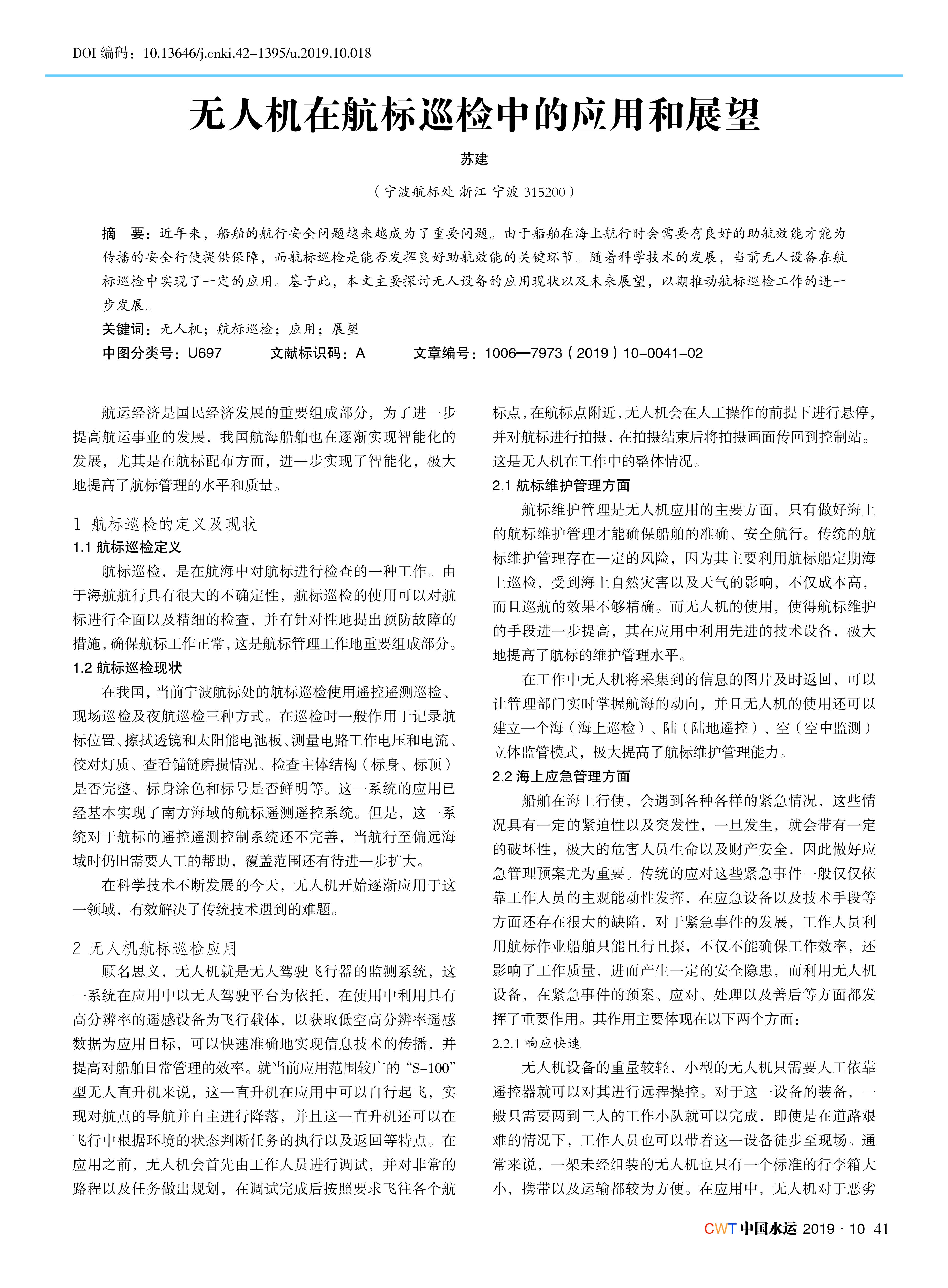 近年来,船舶的航行安全问题越来越成为了重要问题。由于船舶在海上航行时会需要有良好的助航效能才能为 传播的安全行使提供保障,而航标巡检是能否发挥良好助航效能的关键环节。随着科学技术的发展,当前无人设备在航 标巡检中实现了一定的应用。基于此,本文主要探讨无人设备的应用现状以及未来展望,以期推动航标巡检工作的进一 步发展。