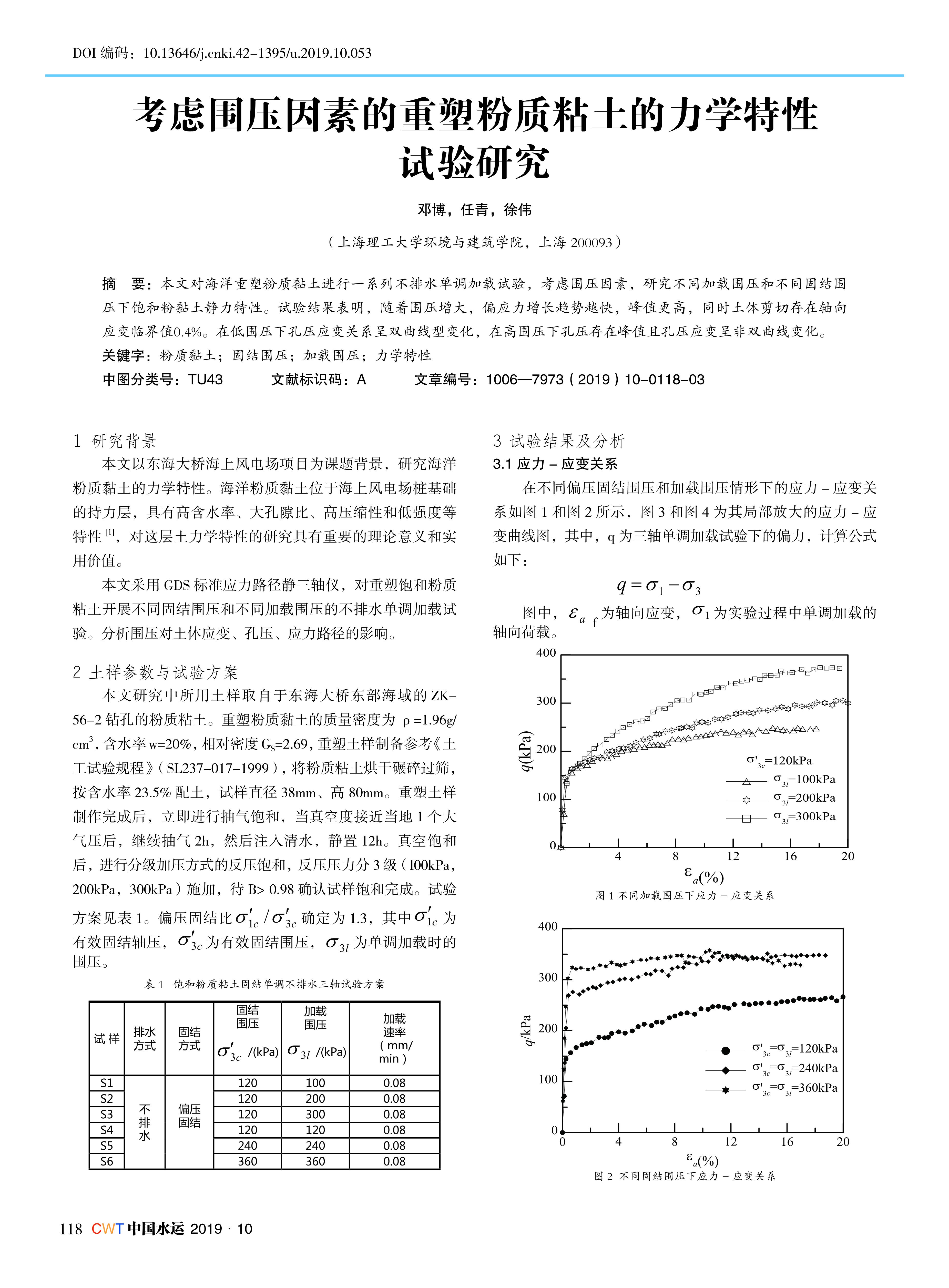 考虑围压因素的重塑粉质粘土的力学特性 试验研究