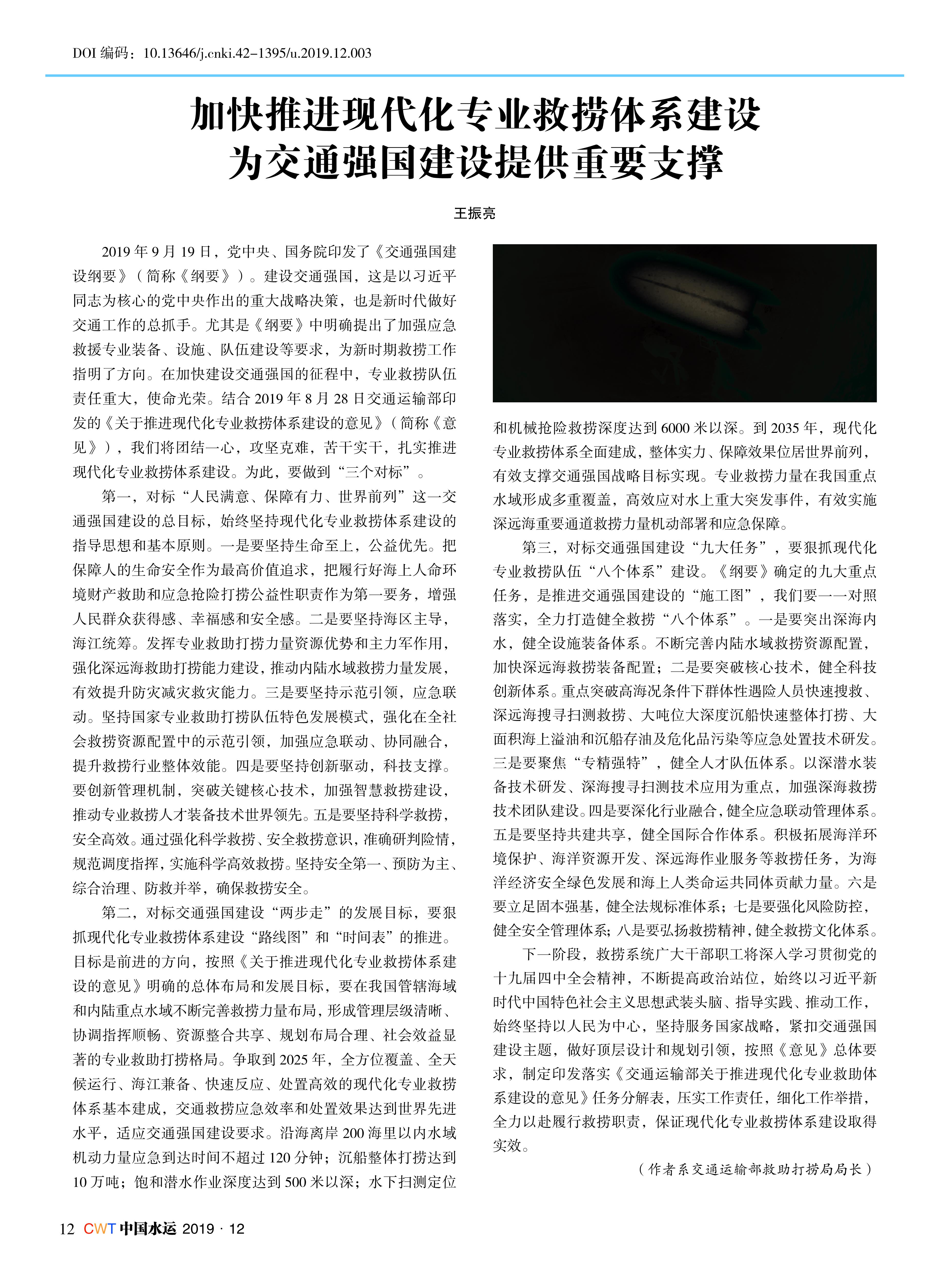 加快推进现代化专业救捞体系建设 为交通强国建设提供重要支撑