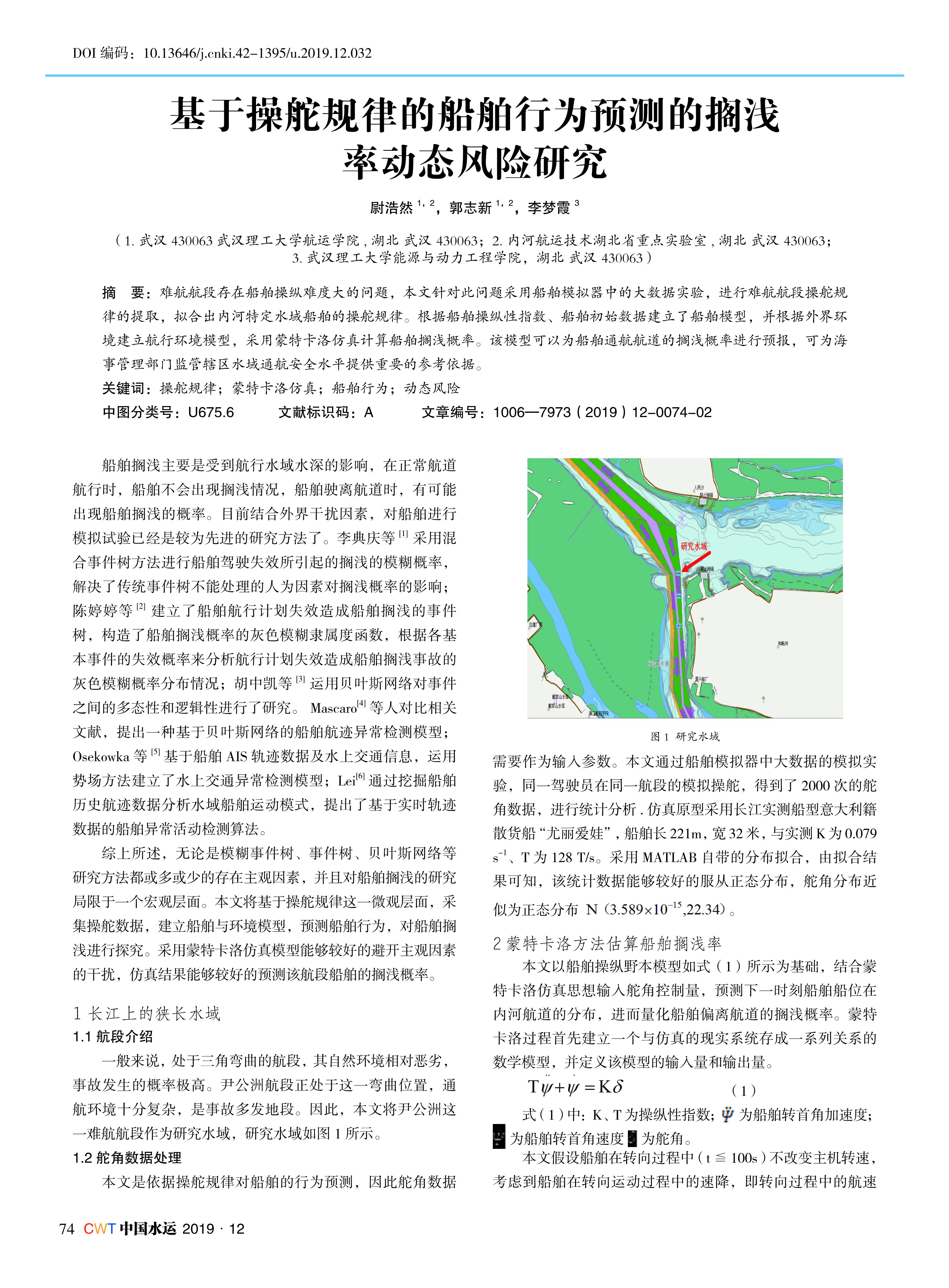 基于操舵规律的船舶行为预测的搁浅 率动态风险研究