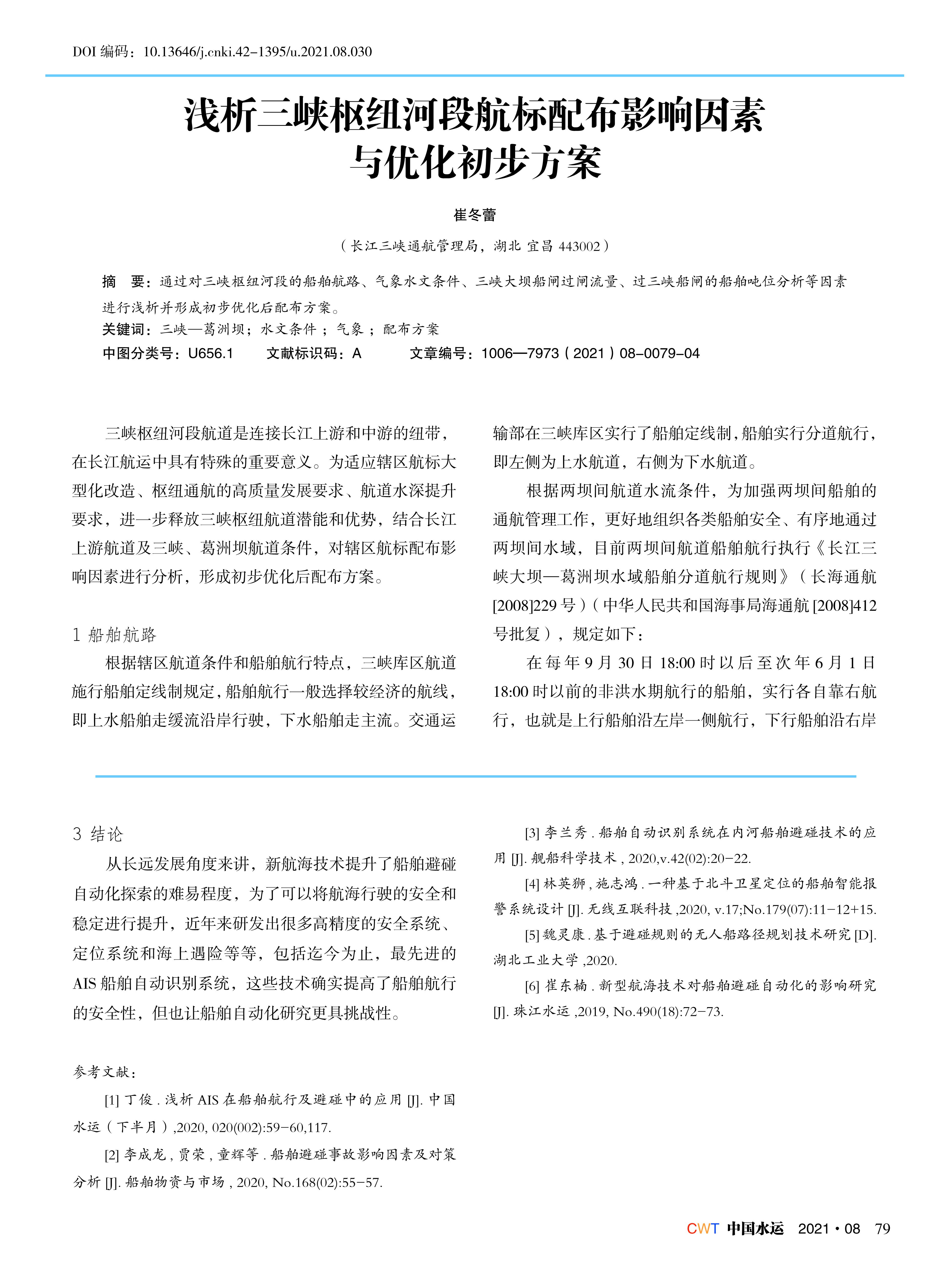 浅析三峡枢纽河段航标配布影响因素与优化初步方案