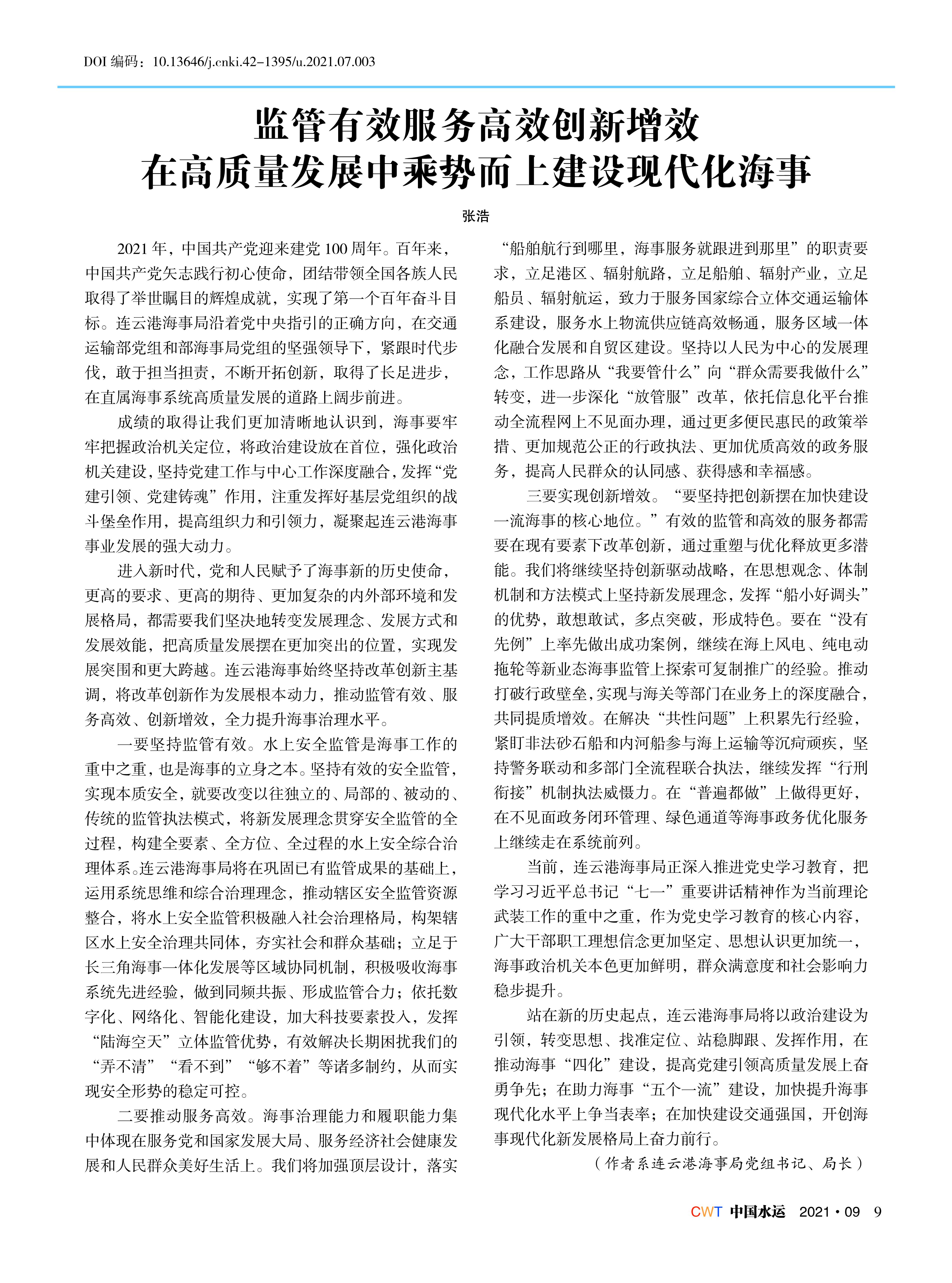 监管有效服务高效创新增效在高质量发展中乘势而上建设现代化海事