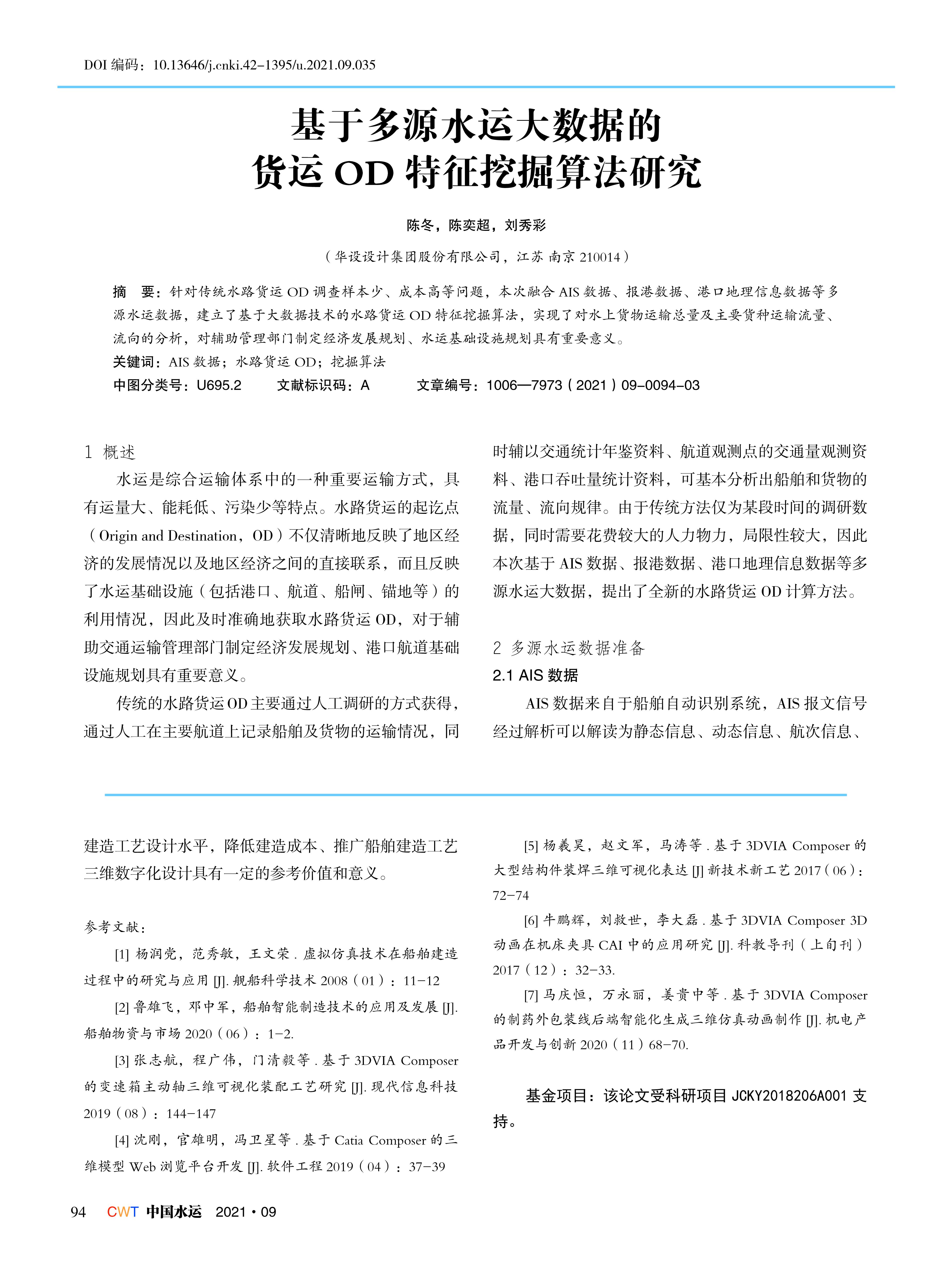 基于多源水运大数据的货运OD特征挖掘算法研究