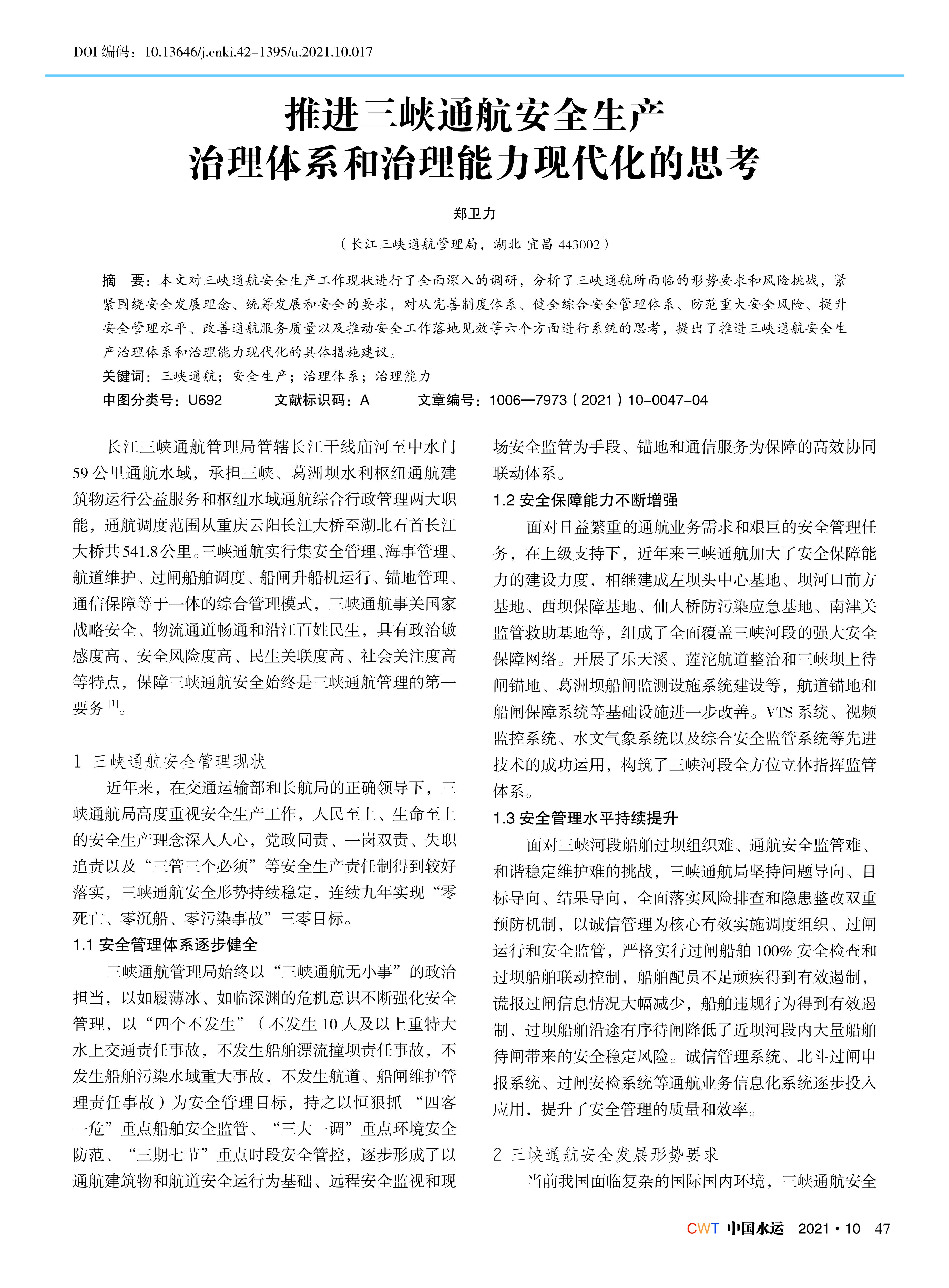 推进三峡通航安全生产治理体系和治理能力现代化的思考
