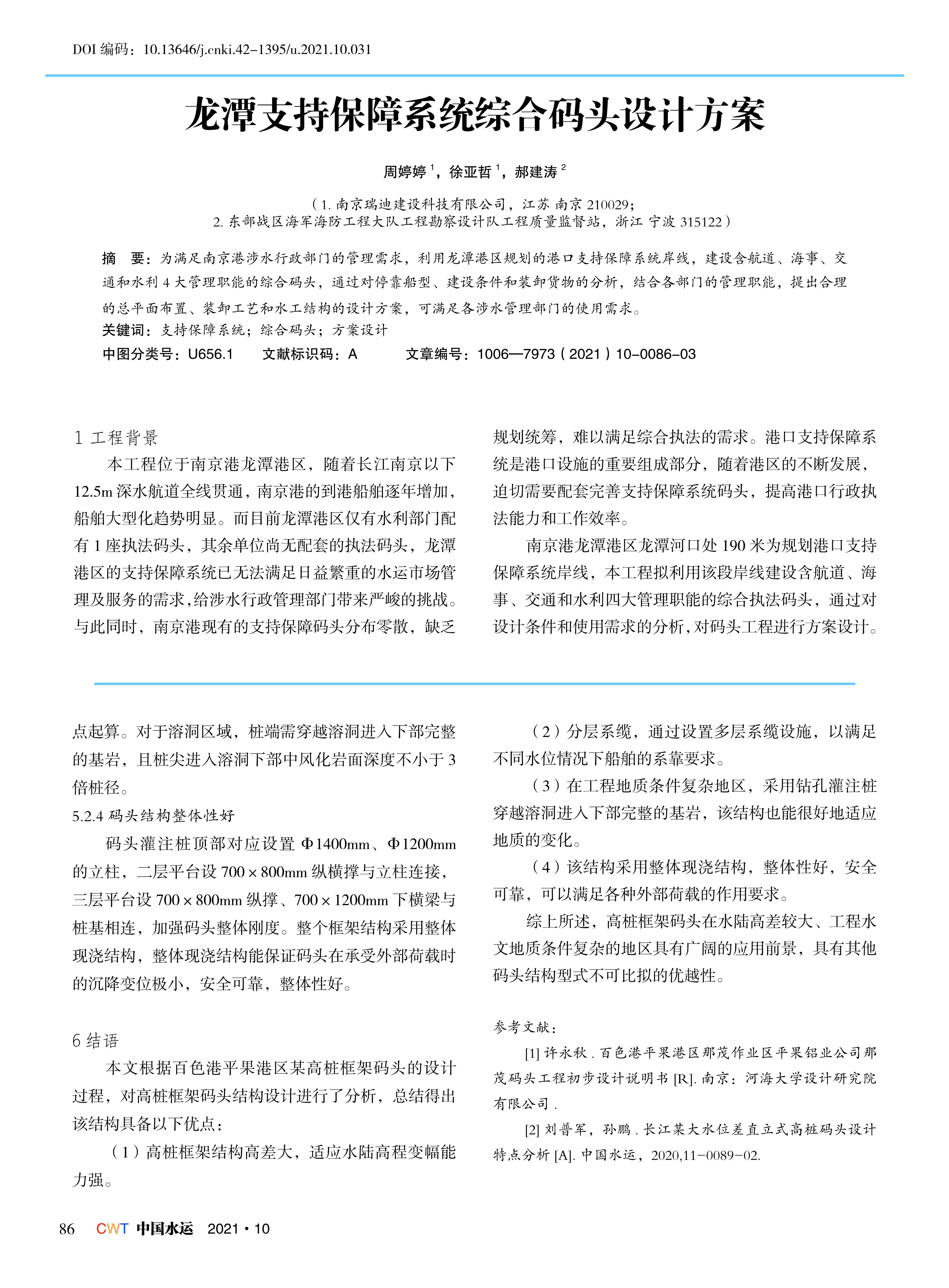 龙潭支持保障系统综合码头设计方案