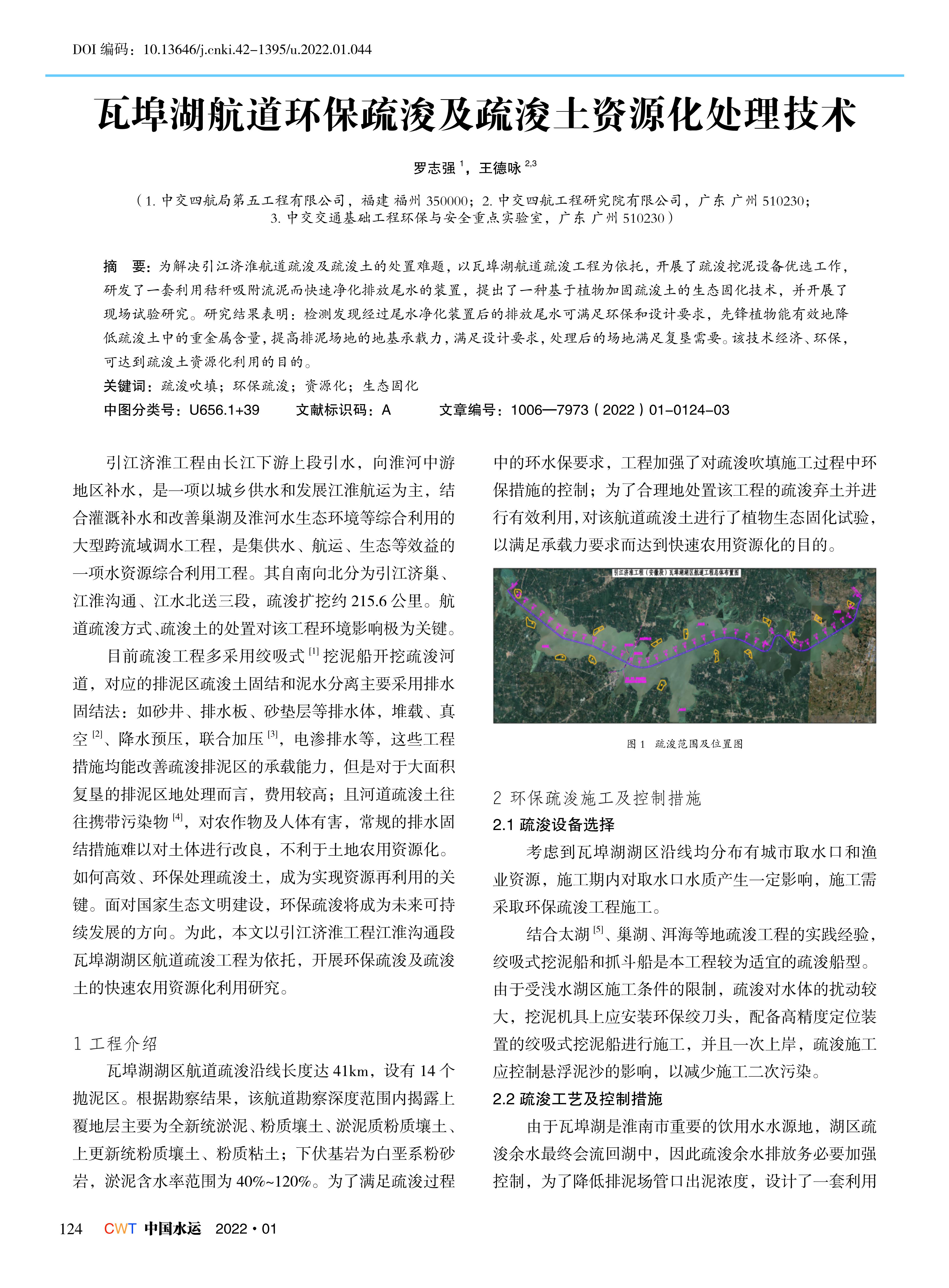 瓦埠湖航道环保疏浚及疏浚土资源化处理技术
