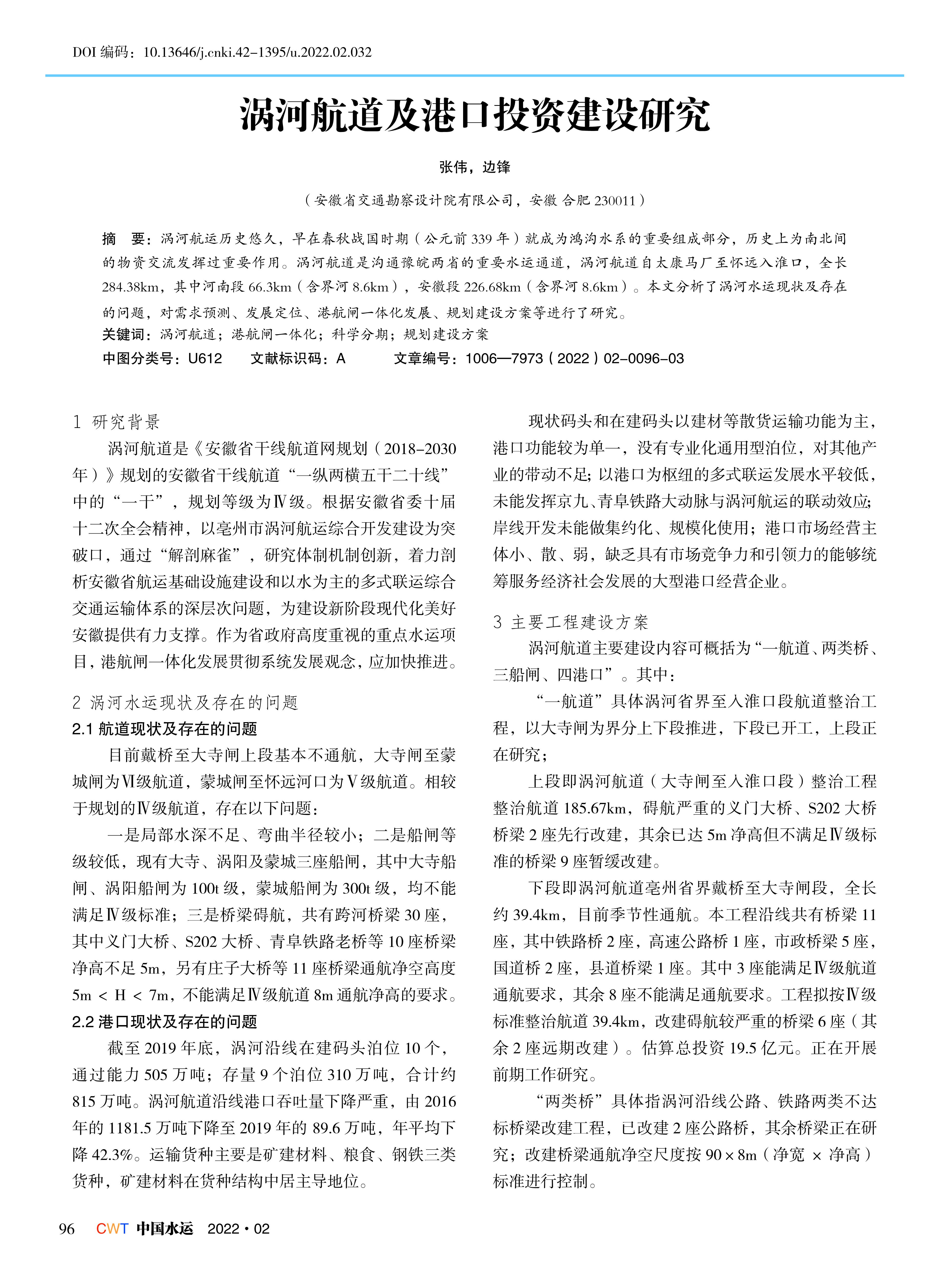 涡河航道及港口投资建设研究