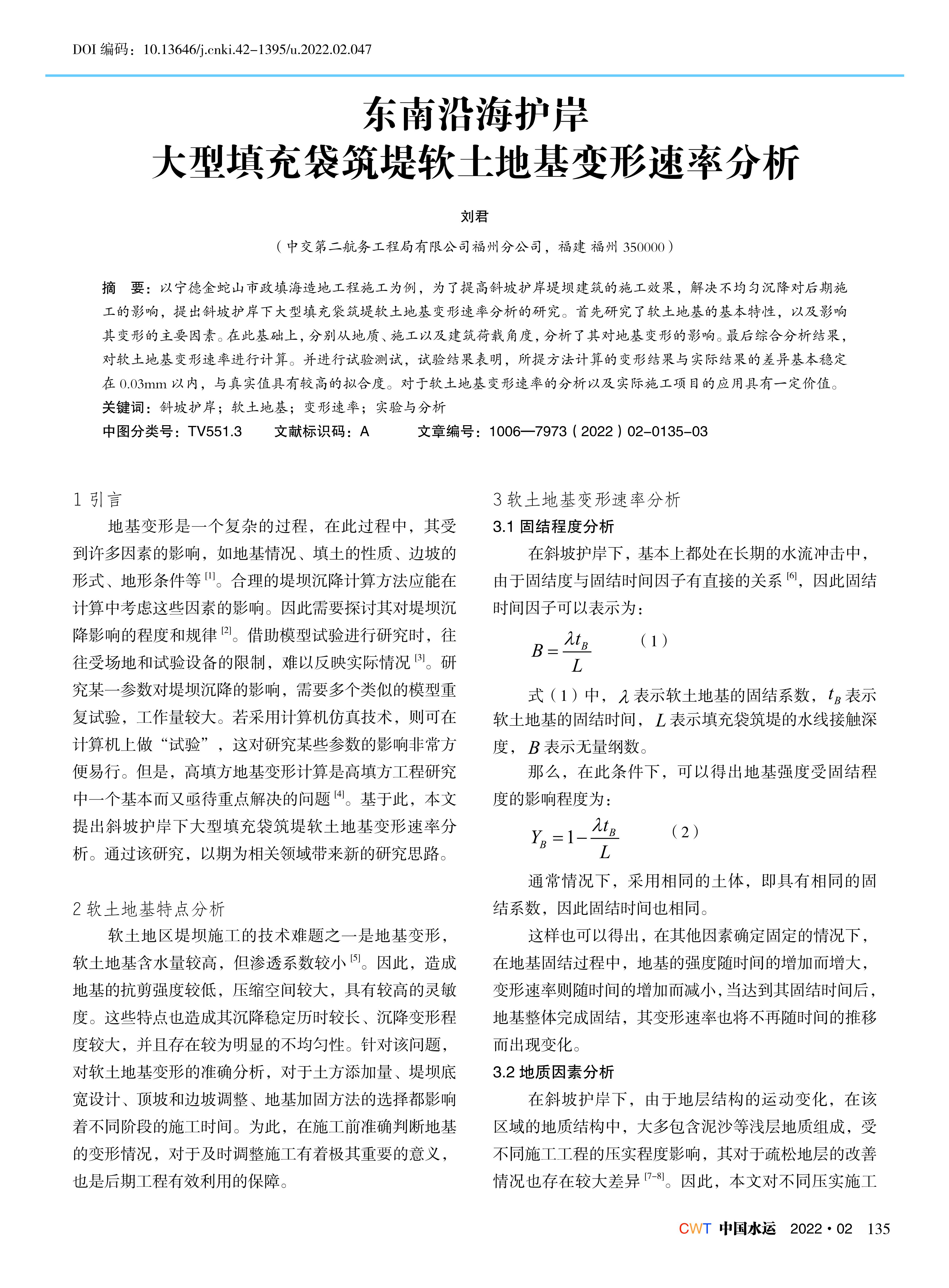 东南沿海护岸大型填充袋筑堤软土地基变形速率分析