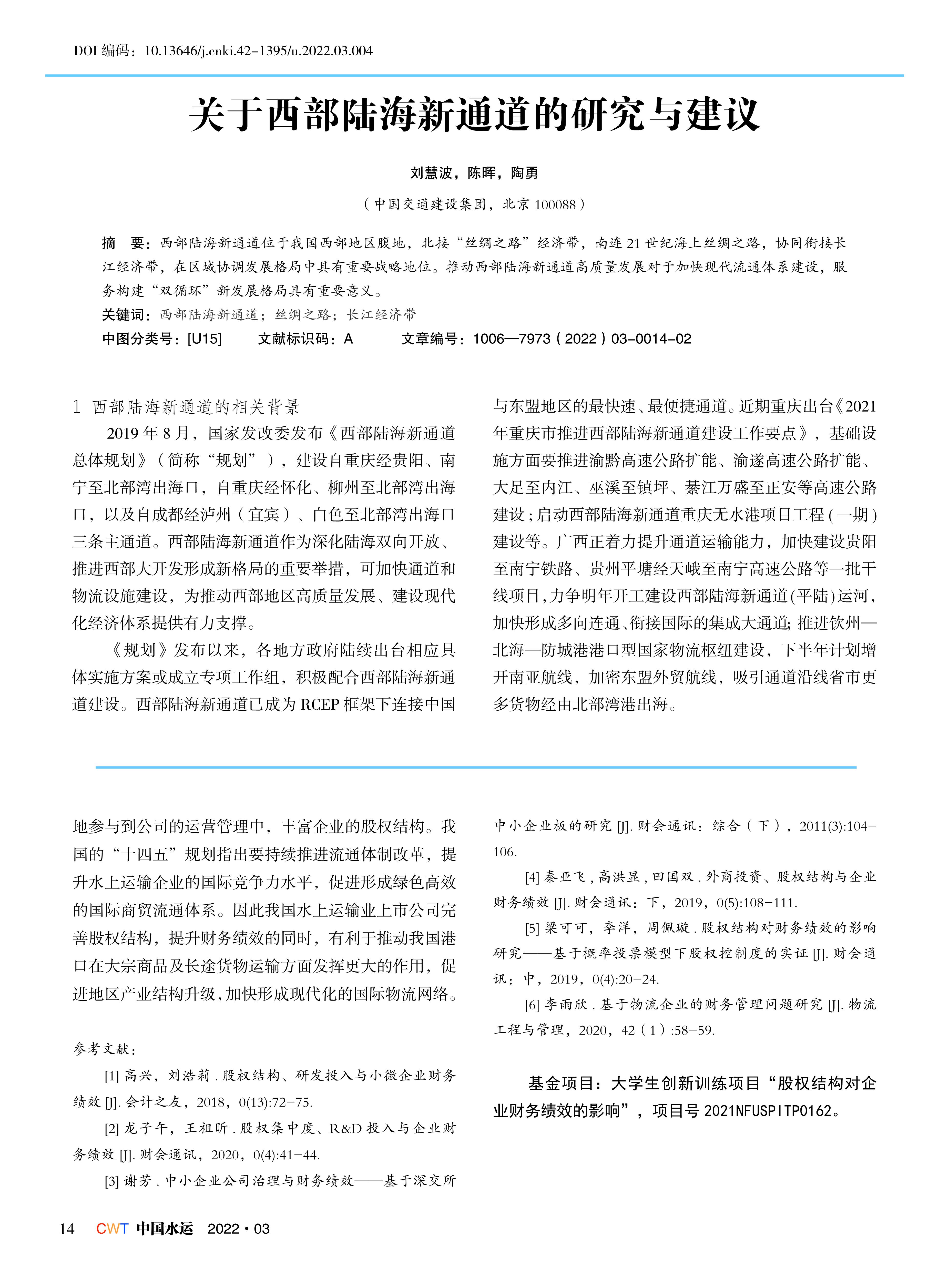 关于西部陆海新通道的研究与建议