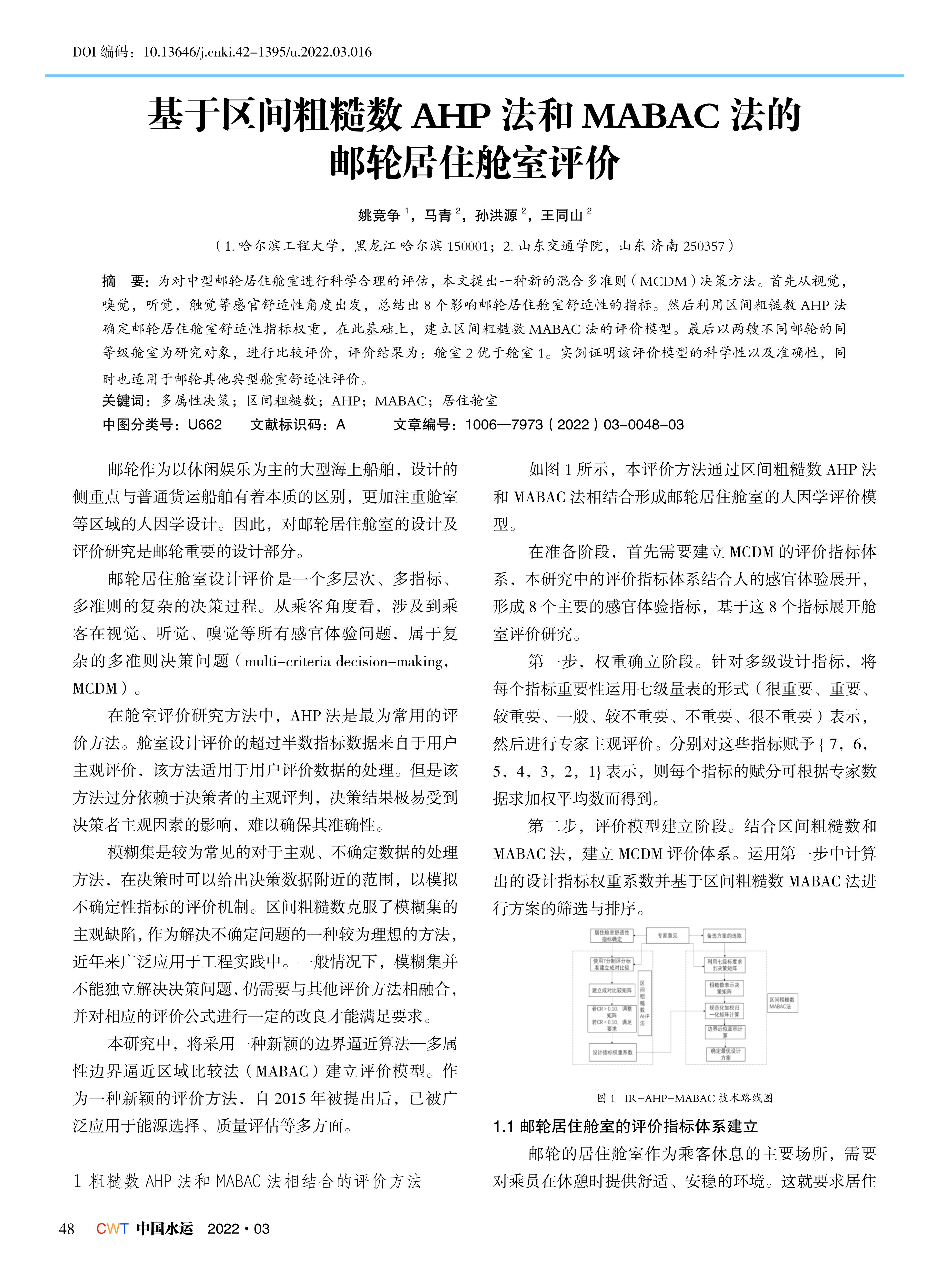 基于区间粗糙数 AHP 法和 MABAC 法的 邮轮居住舱室评价