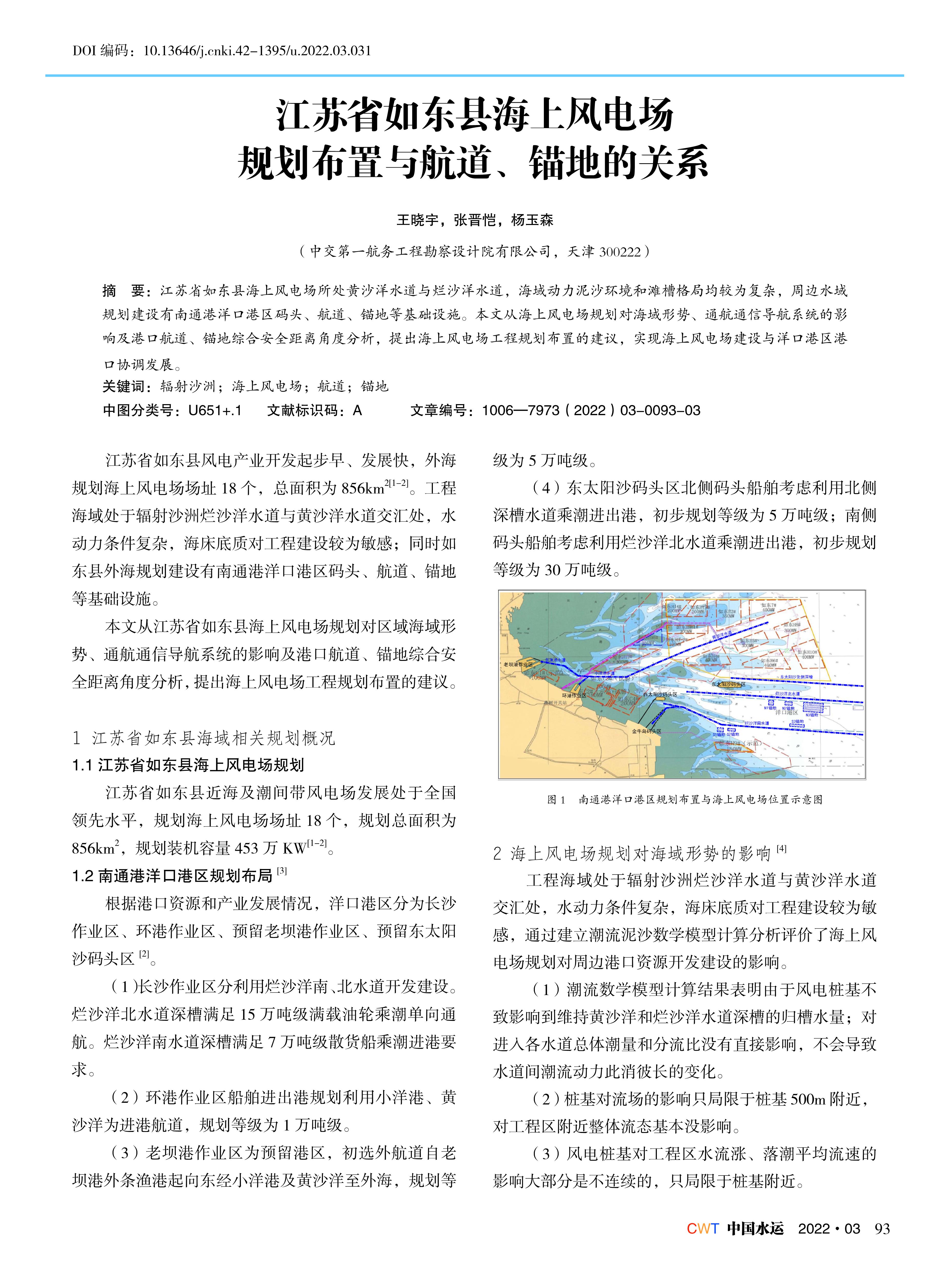 江苏省如东县海上风电场规划布置与航道、锚地的关系