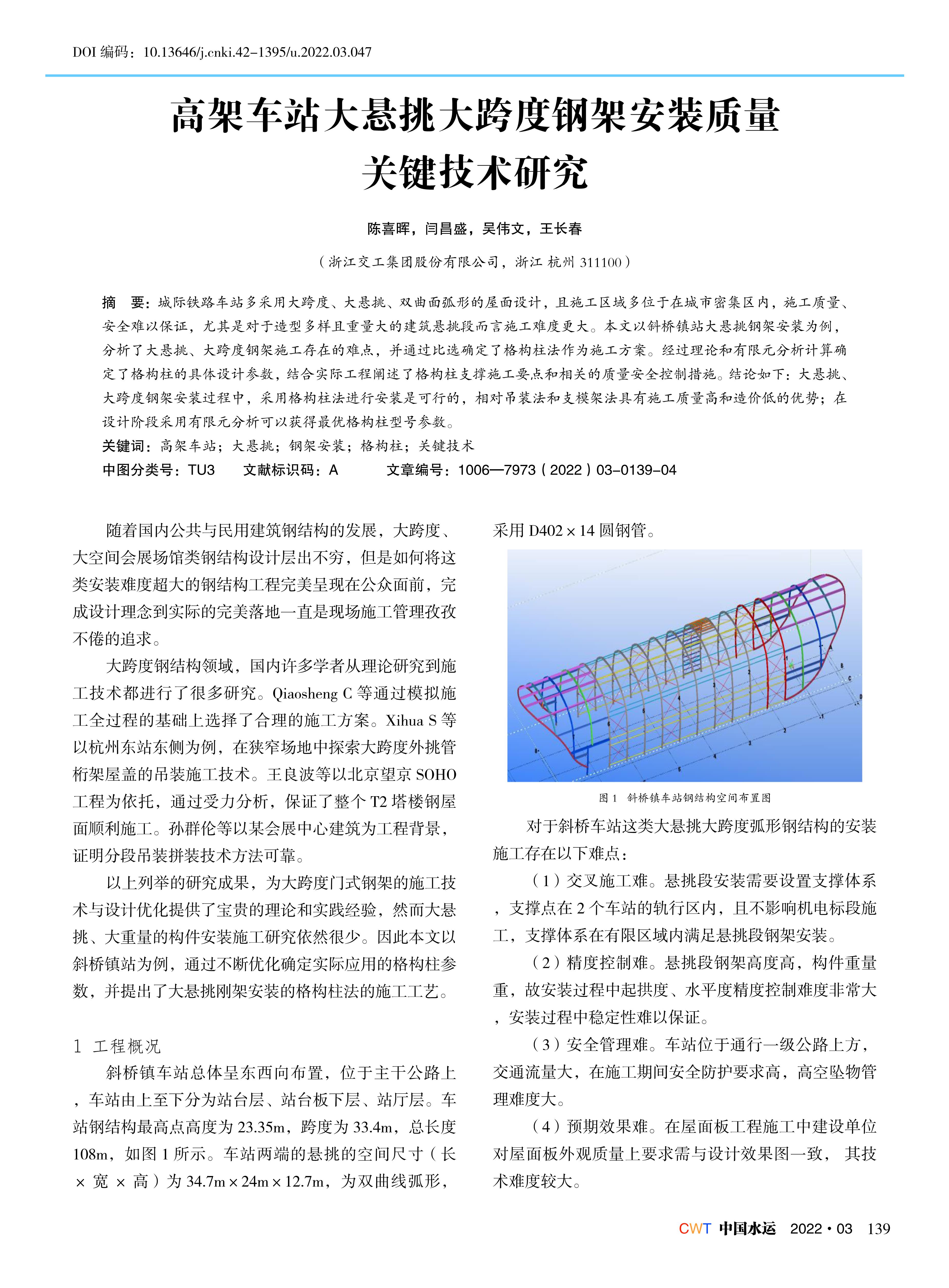 高架车站大悬挑大跨度钢架安装质量 关键技术研究