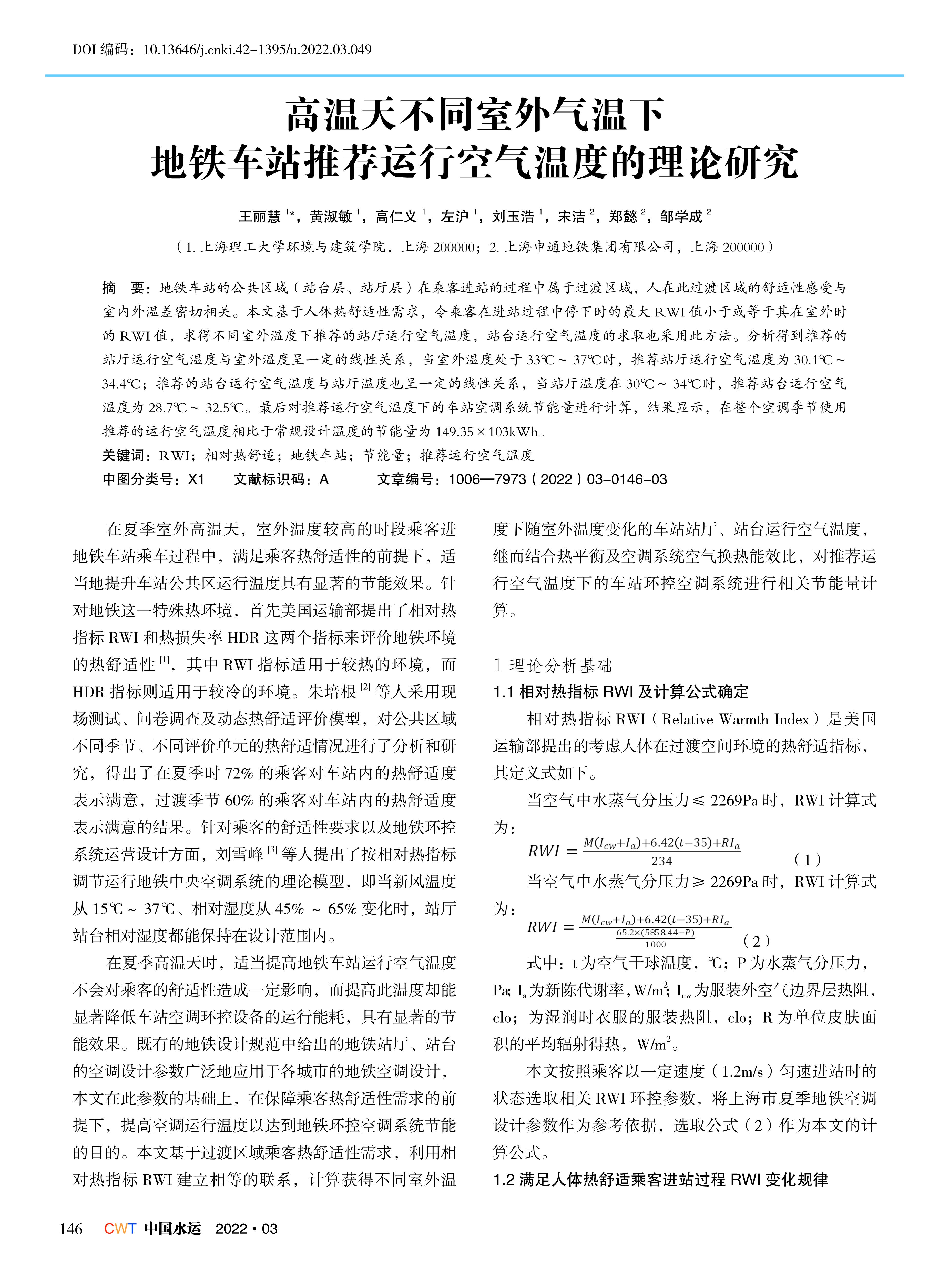 高温天不同室外气温下 地铁车站推荐运行空气温度的理论研究