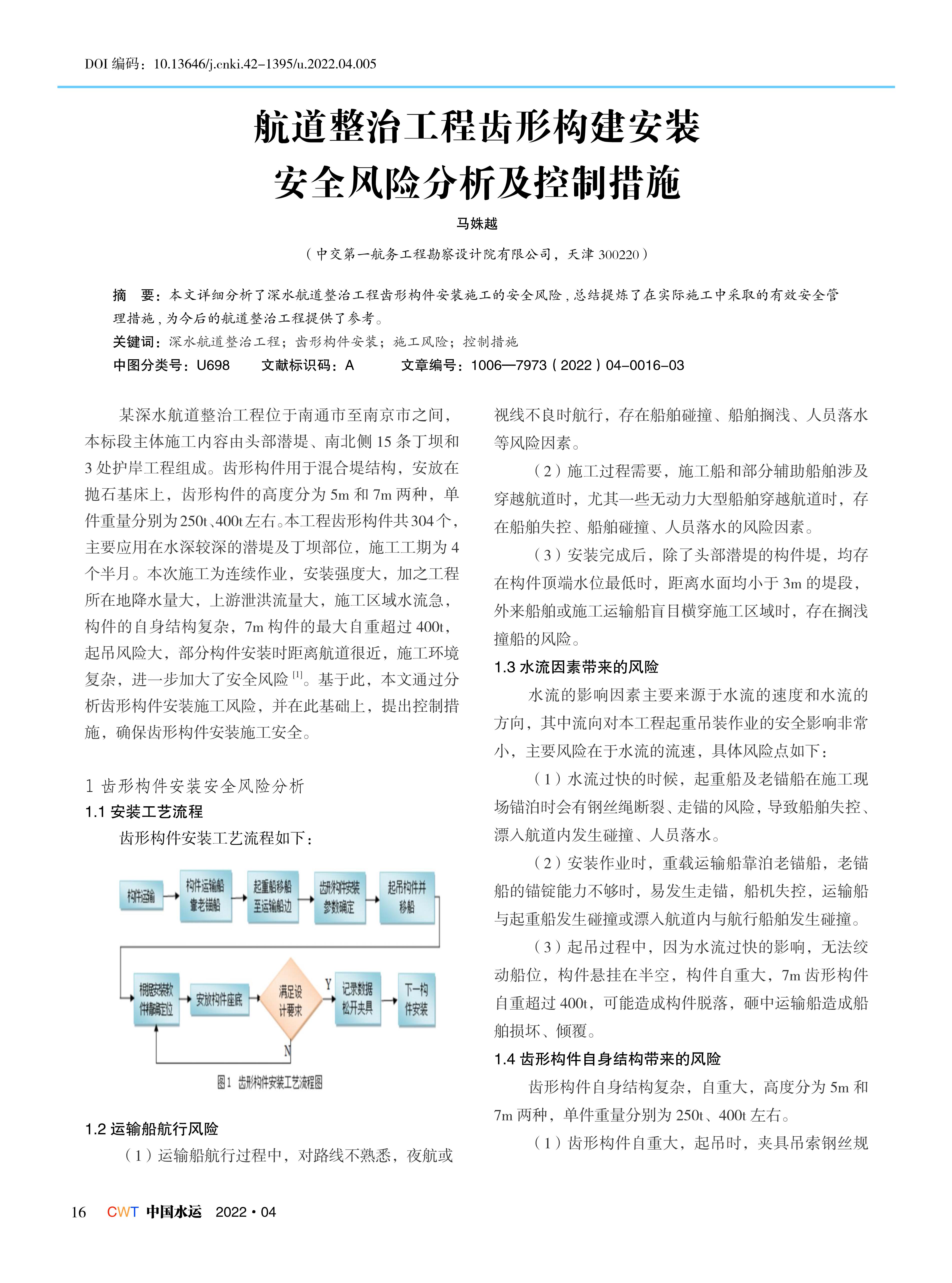 航道整治工程齿形构建安装 安全风险分析及控制措施