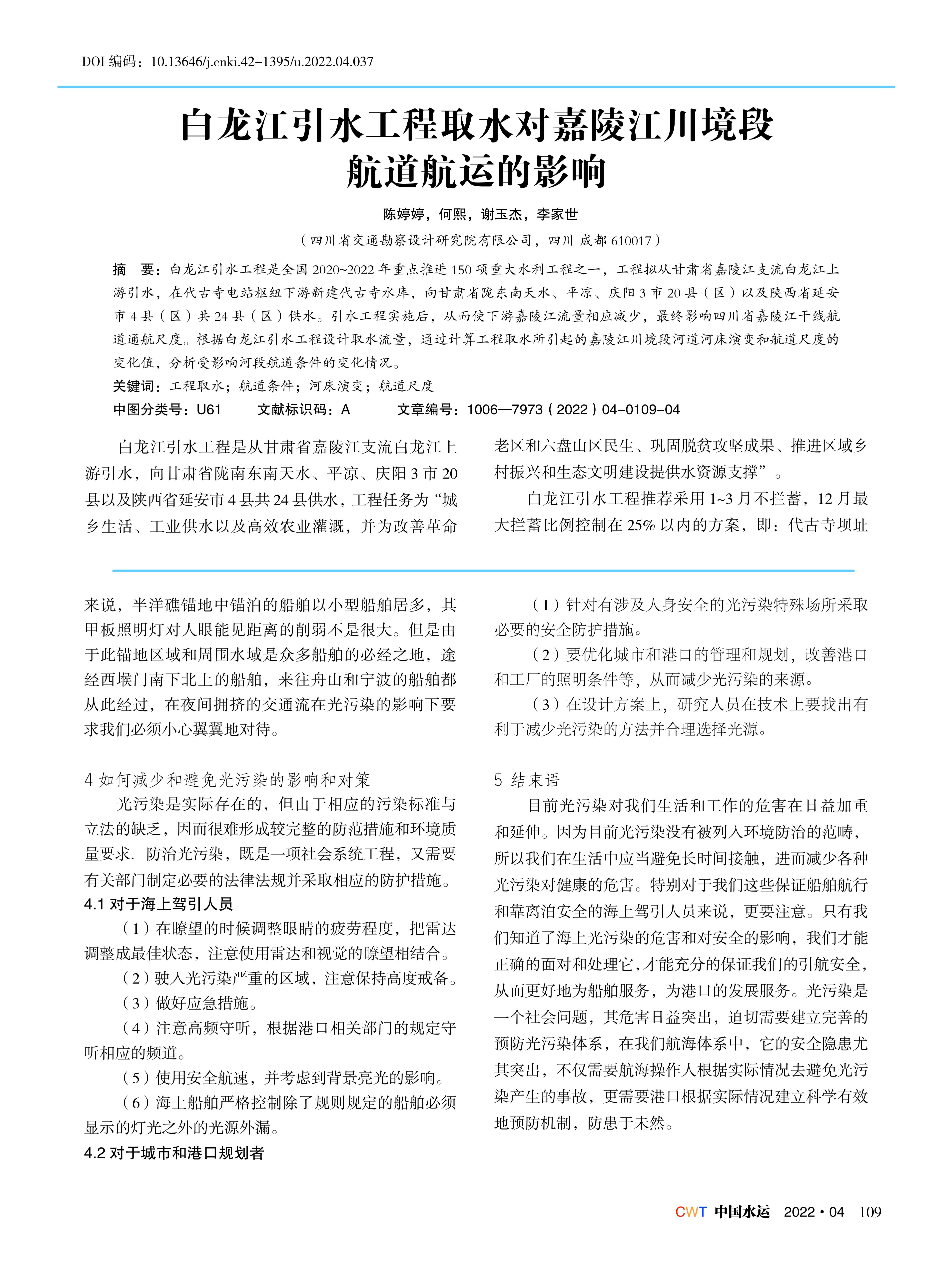 白龙江引水工程取水对嘉陵江川境段 航道航运的影响