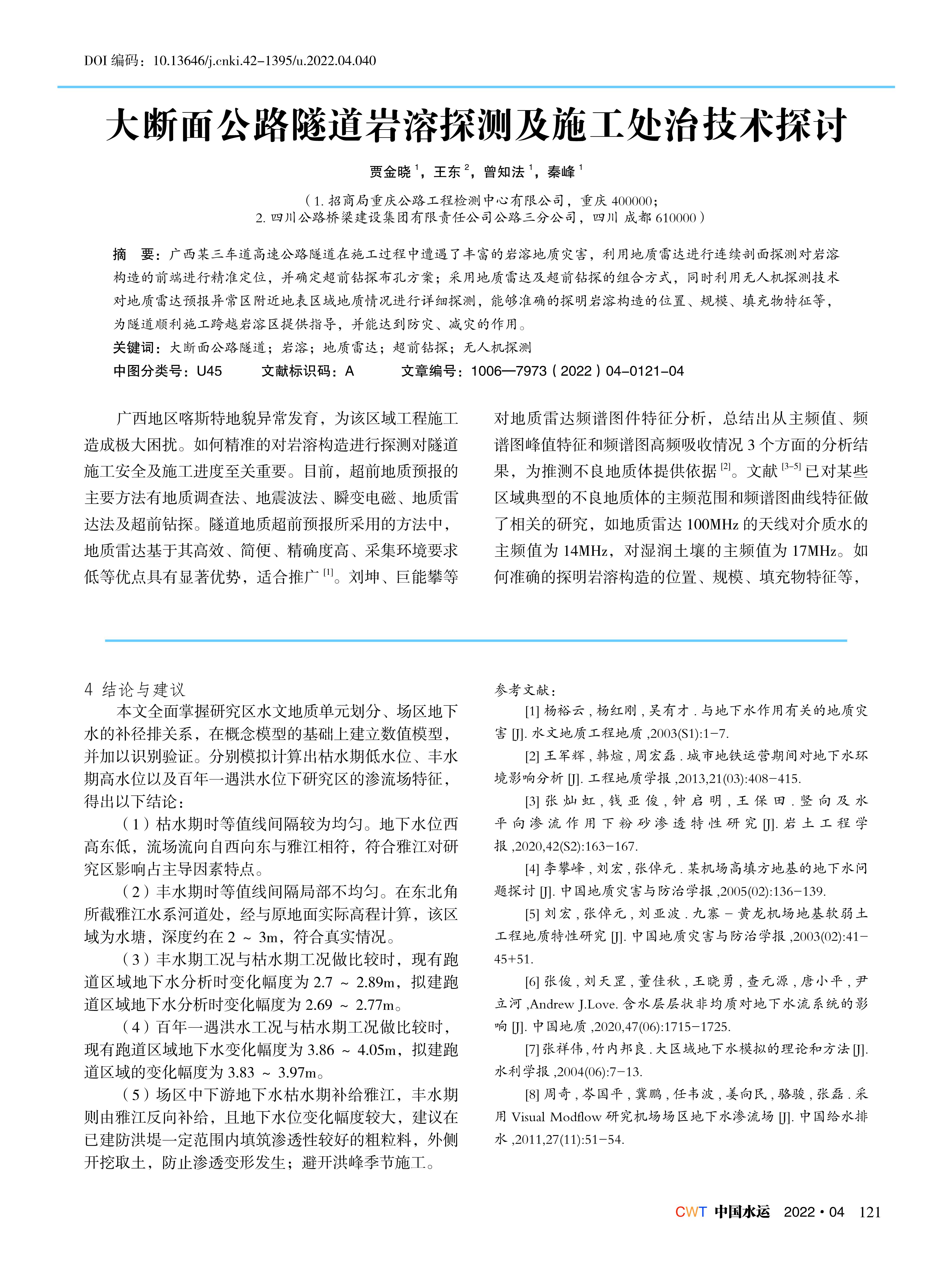 大断面公路隧道岩溶探测及施工处治技术探讨