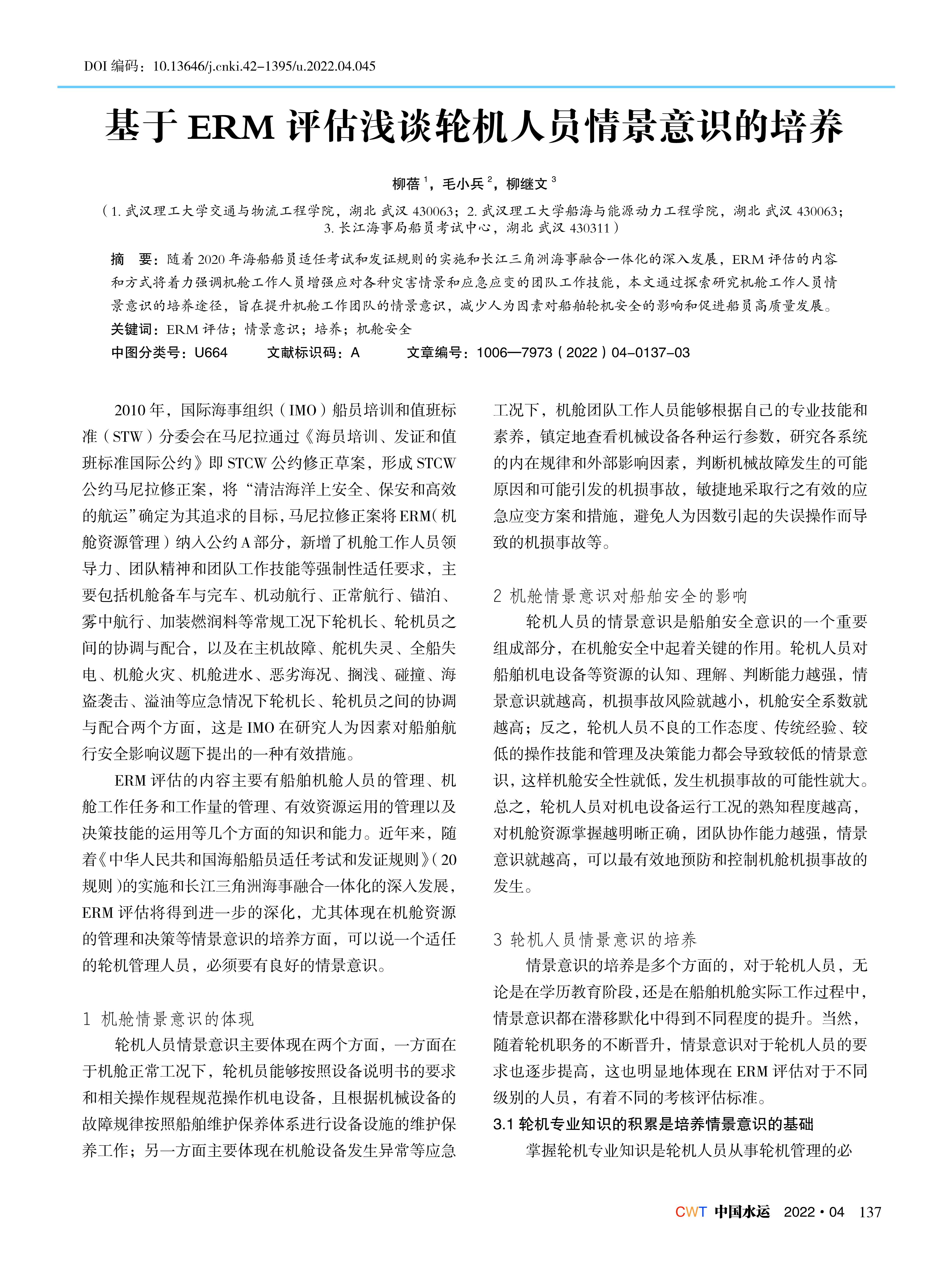 基于 ERM 评估浅谈轮机人员情景意识的培养