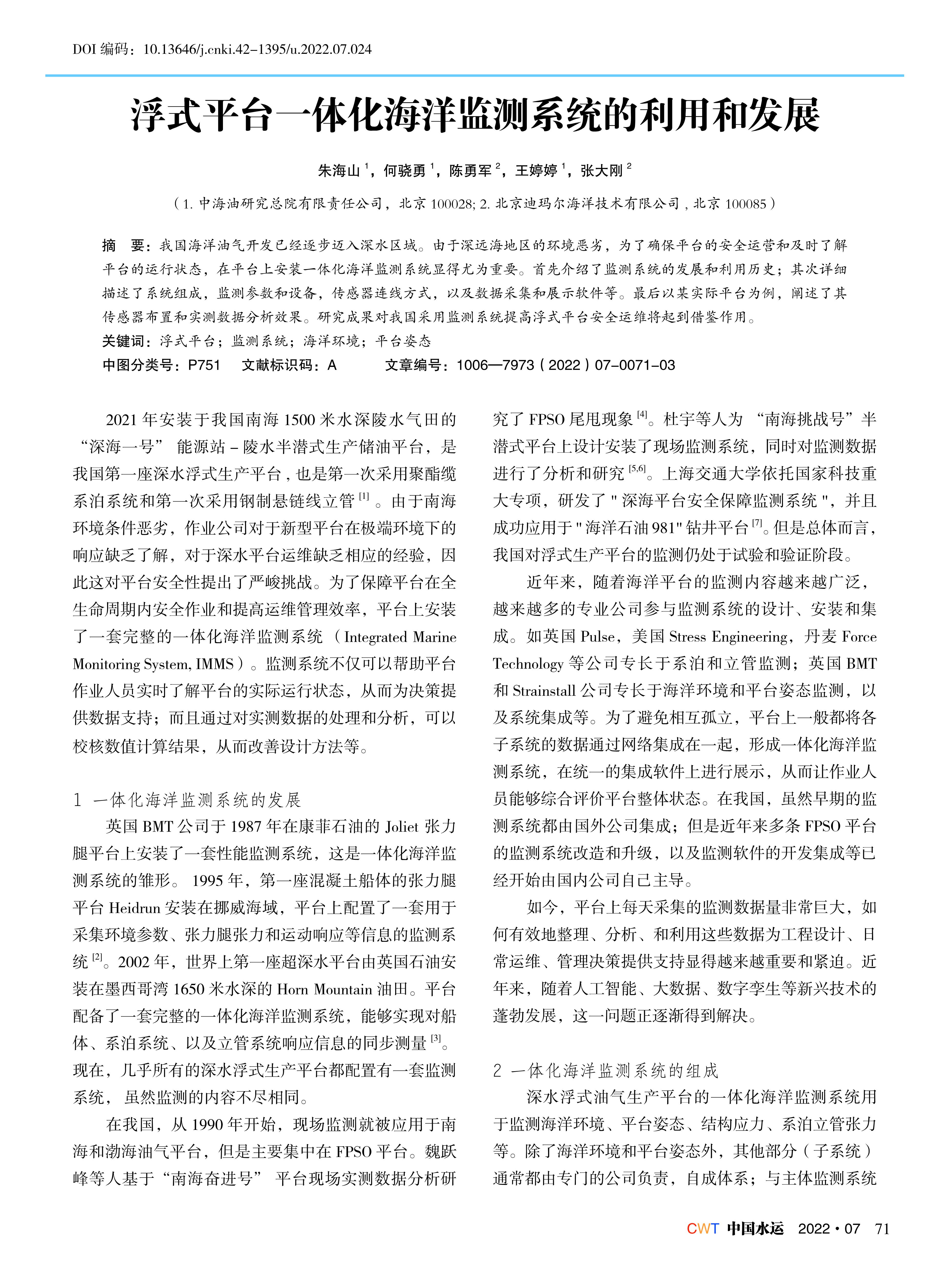1. 中海油研究总院有限责任公司,北京 100028; 2. 北京迪玛尔海洋技术有限公司 , 北京 100085