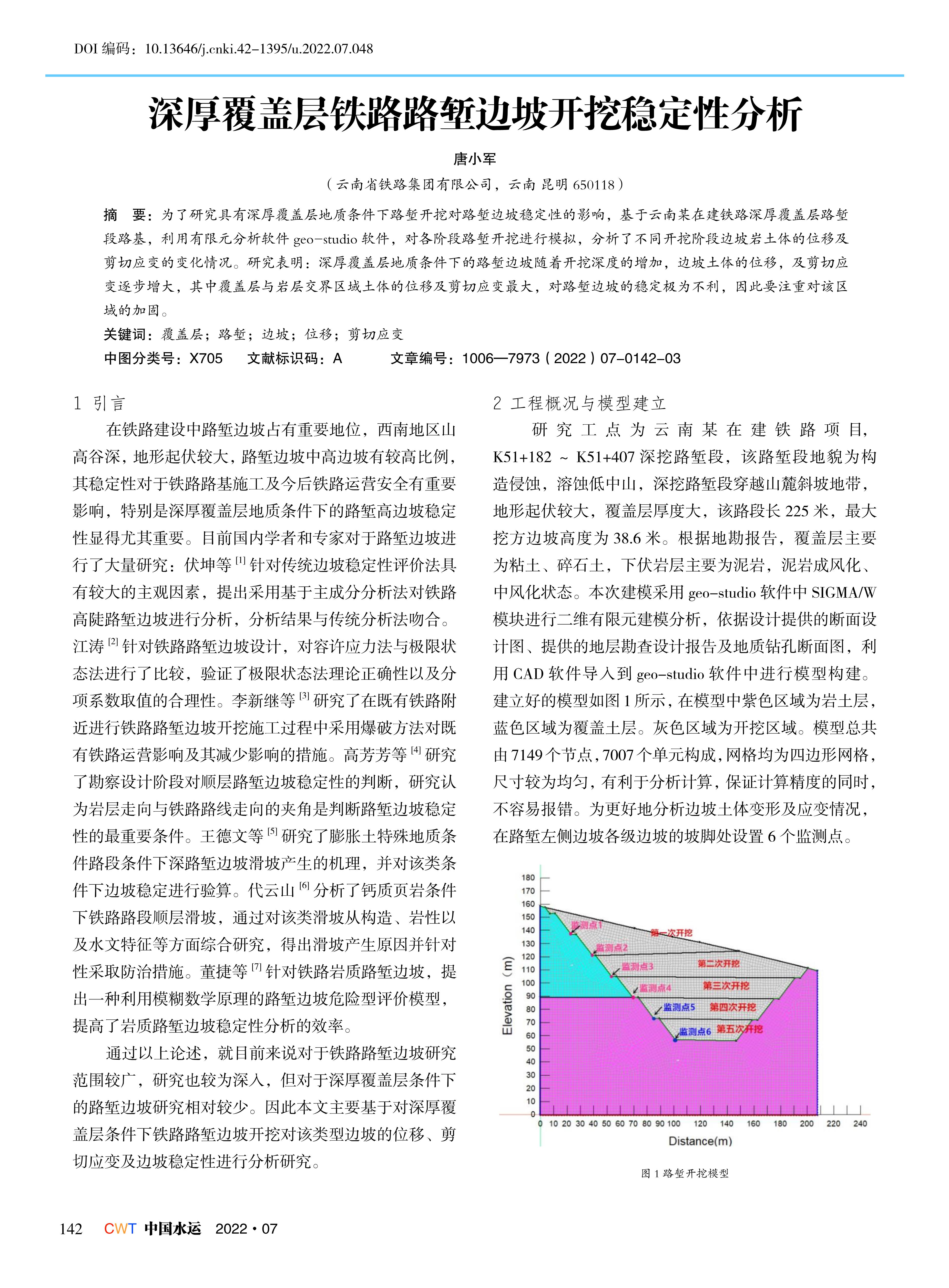 深厚覆盖层铁路路堑边坡开挖稳定性分析