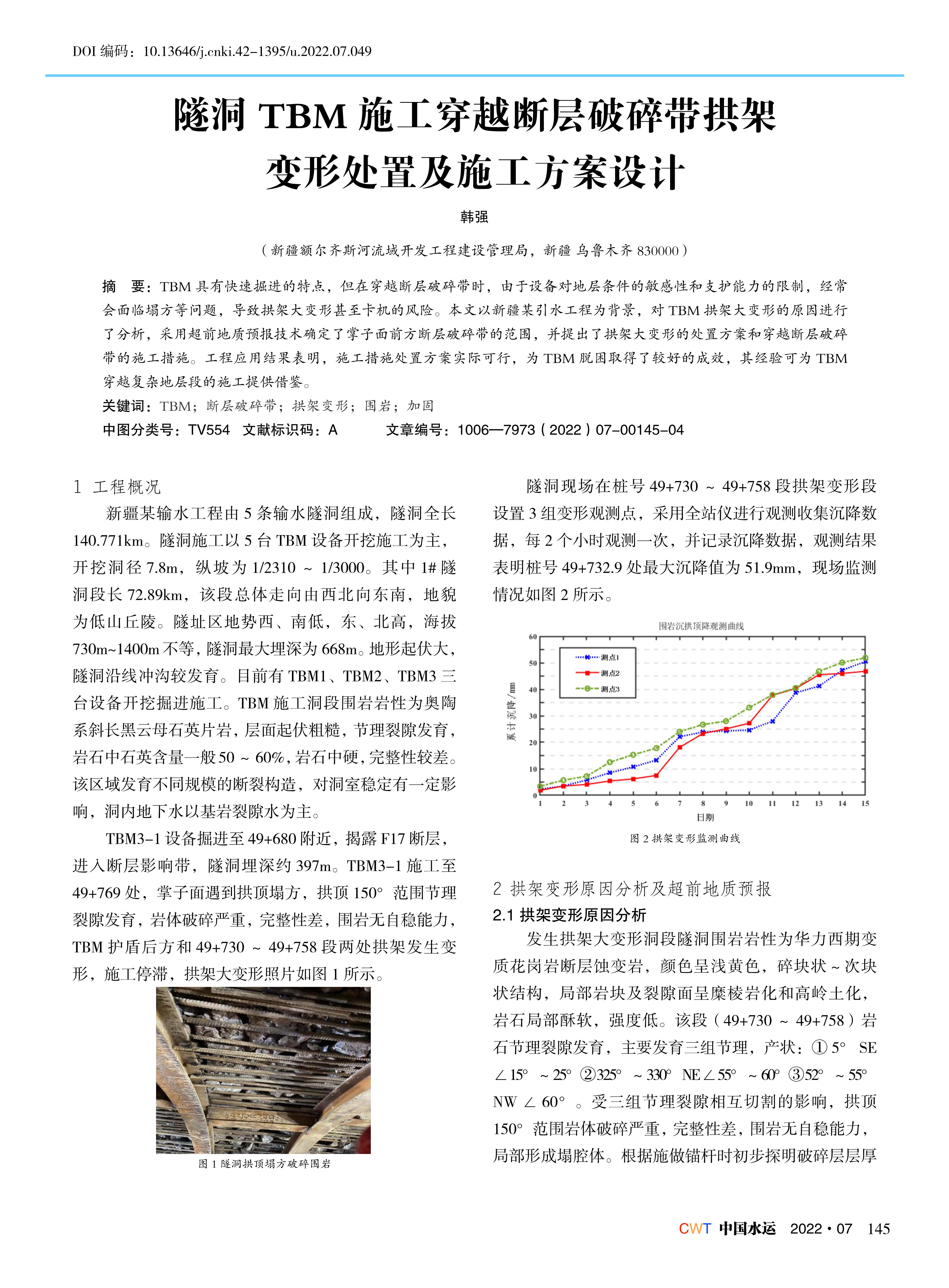 隧洞 TBM 施工穿越断层破碎带拱架变形处置及施工方案设计