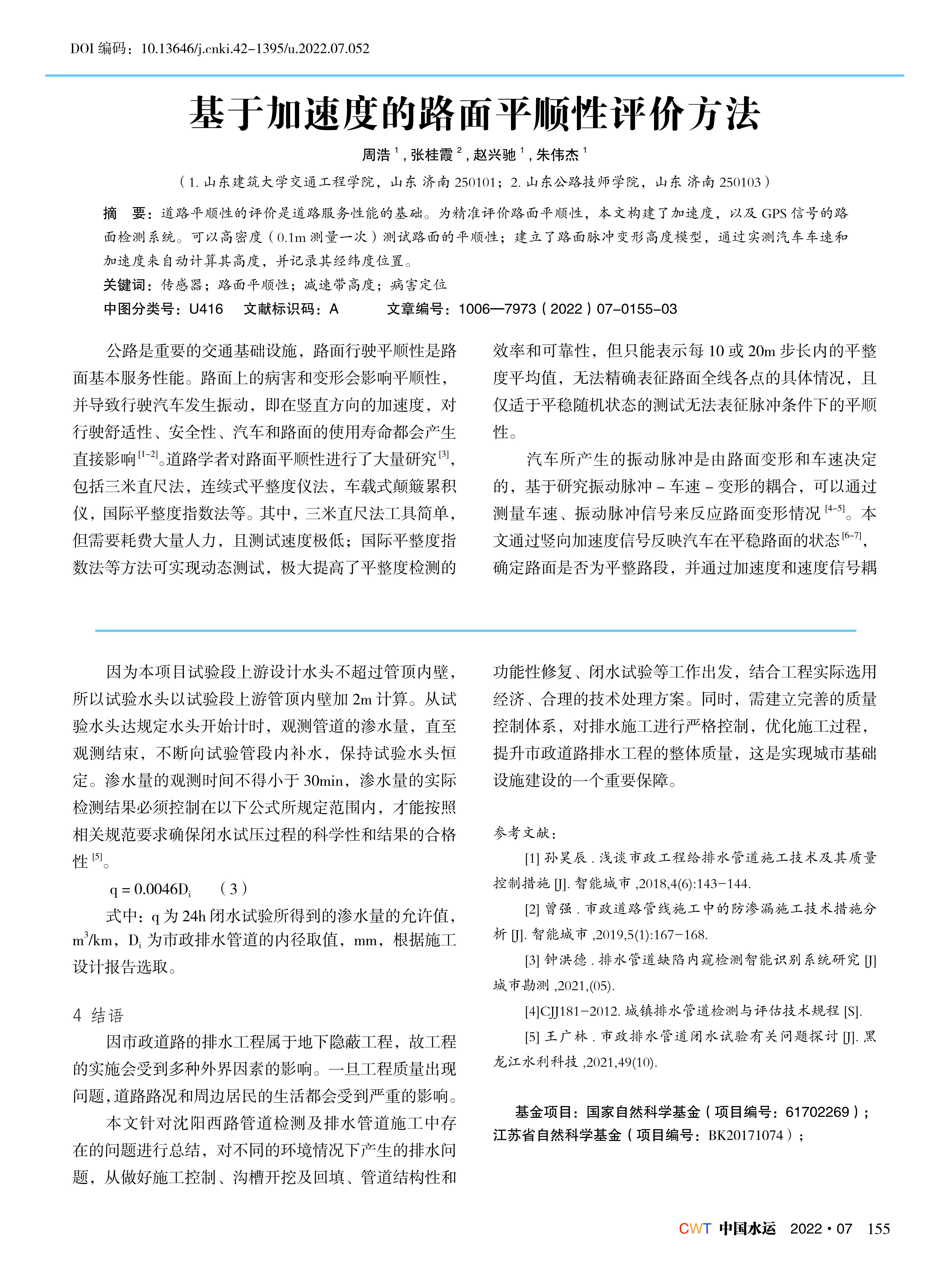 基于加速度的路面平顺性评价方法