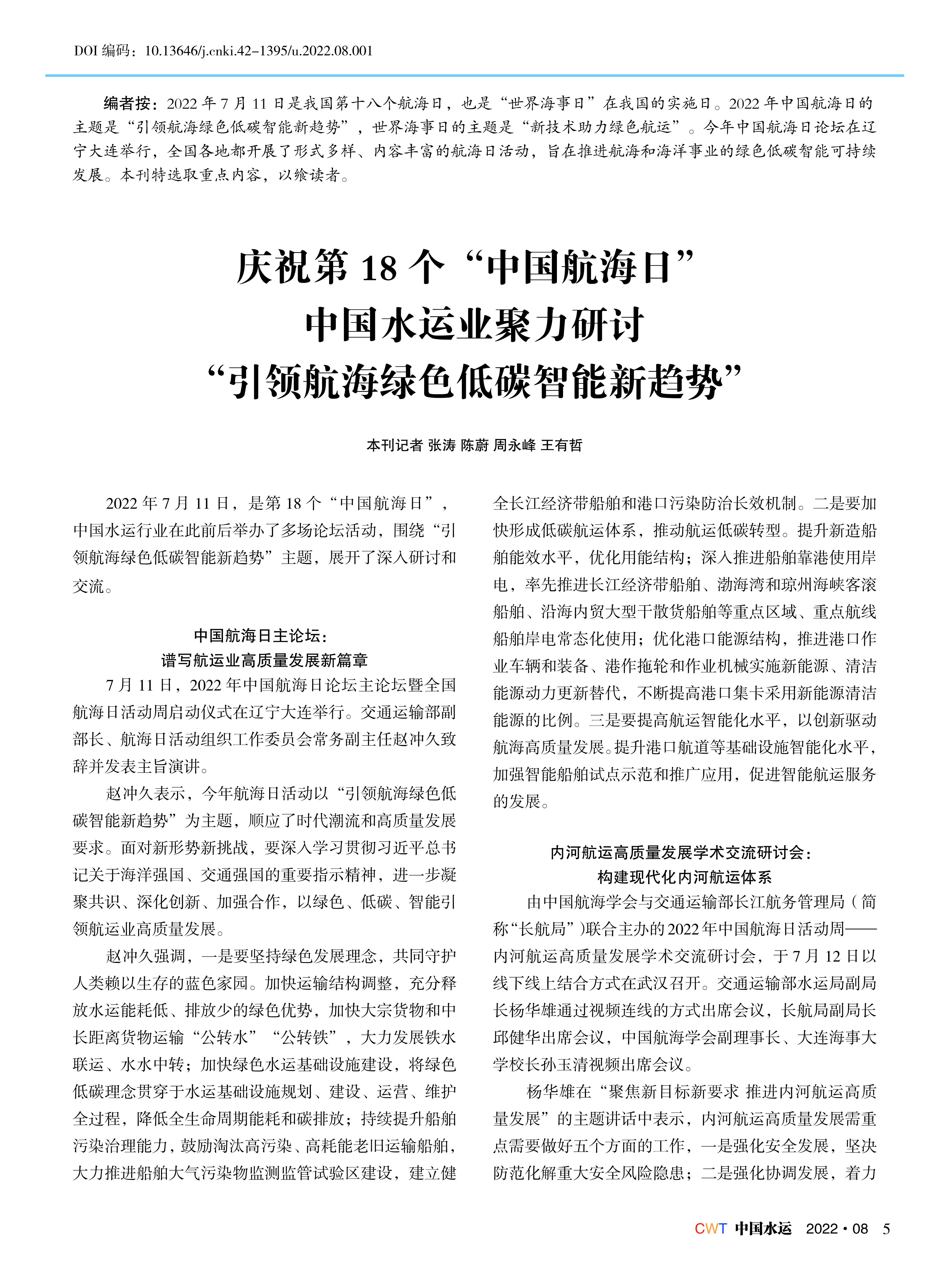 庆祝第 18 个“中国航海日” 中国水运业聚力研讨“引领航海绿色低碳智能新趋势”