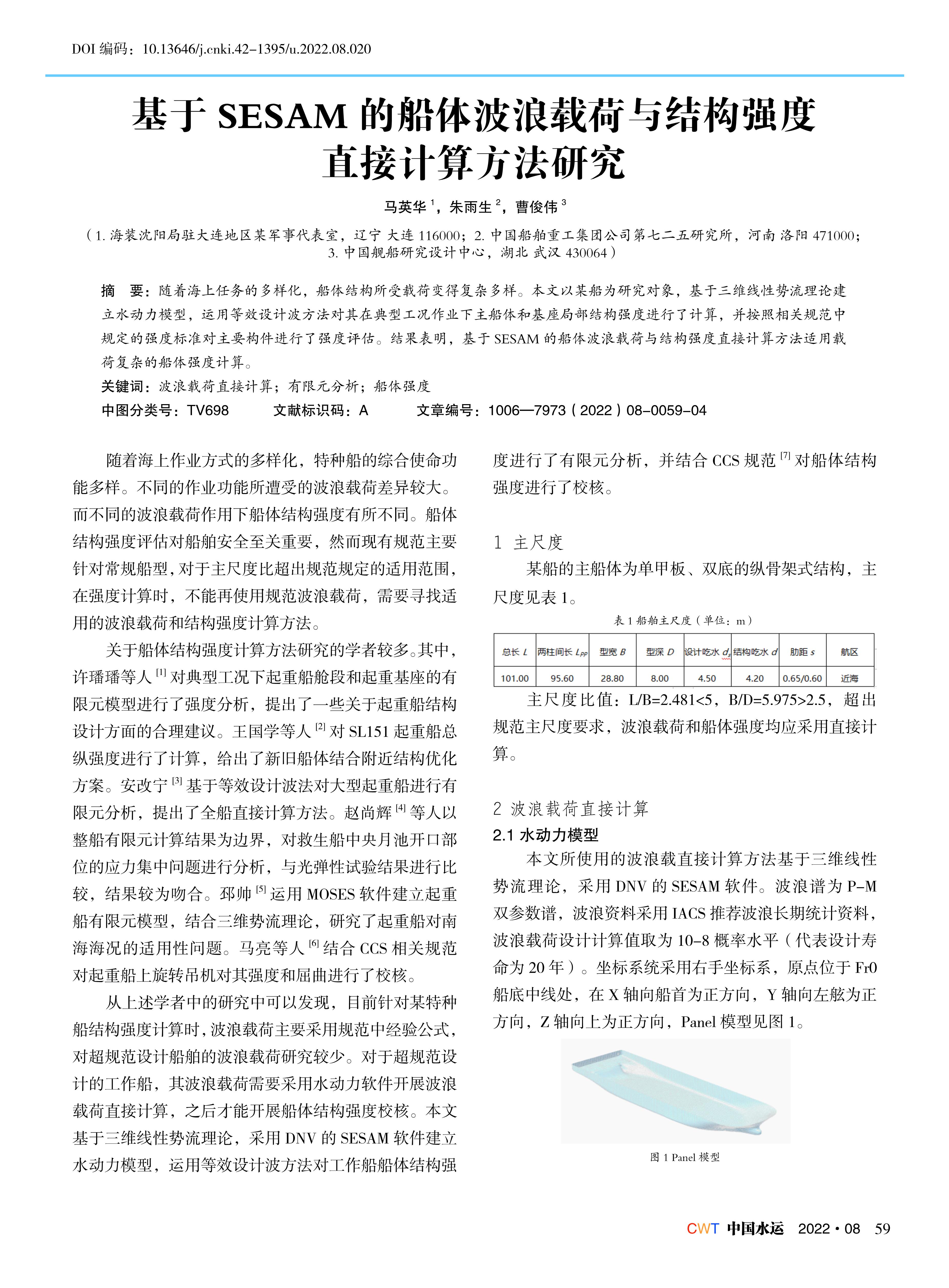 基于 SESAM 的船体波浪载荷与结构强度直接计算方法研究