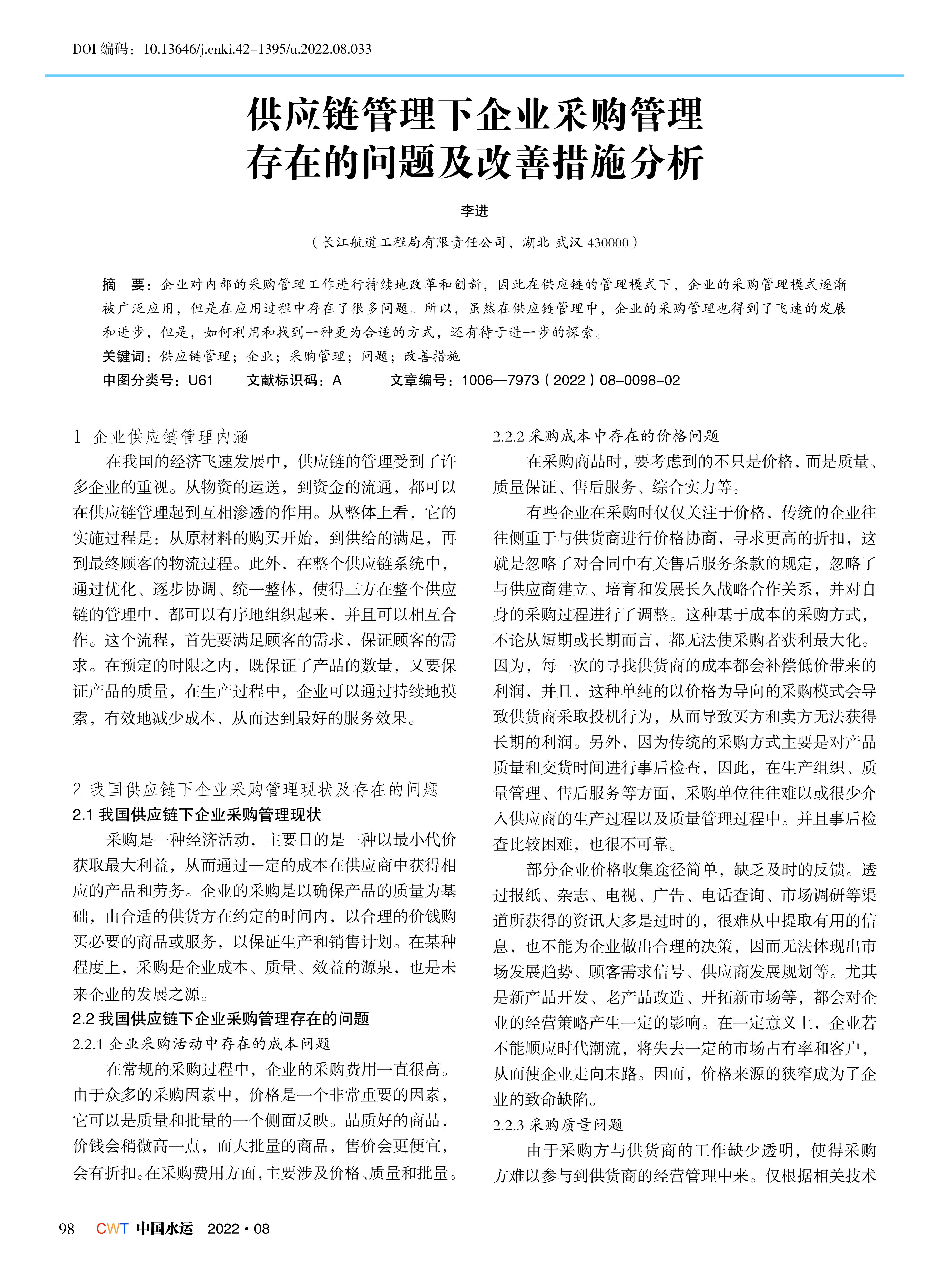 供应链管理下企业采购管理存在的问题及改善措施分析