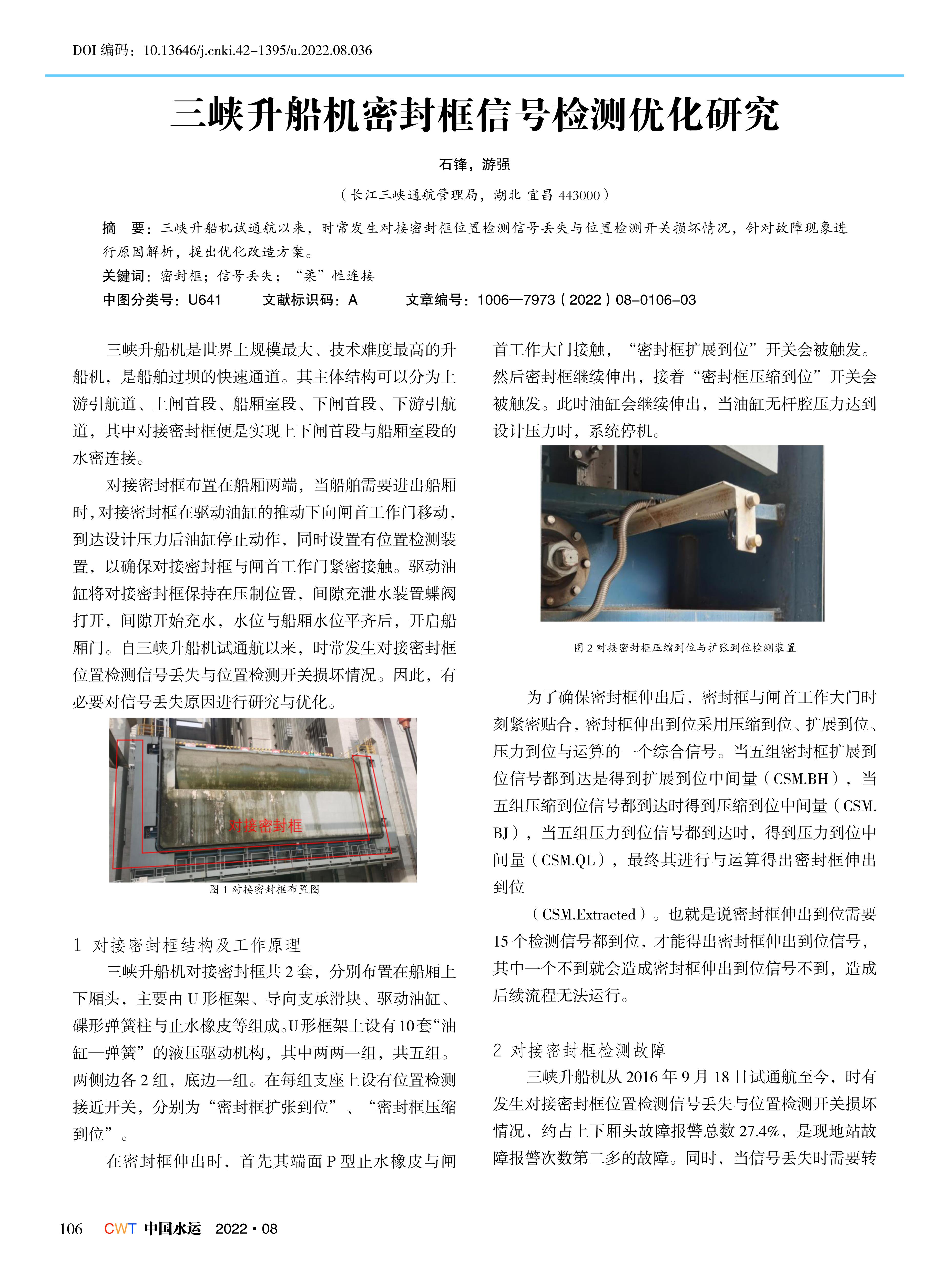 三峡升船机密封框信号检测优化研究