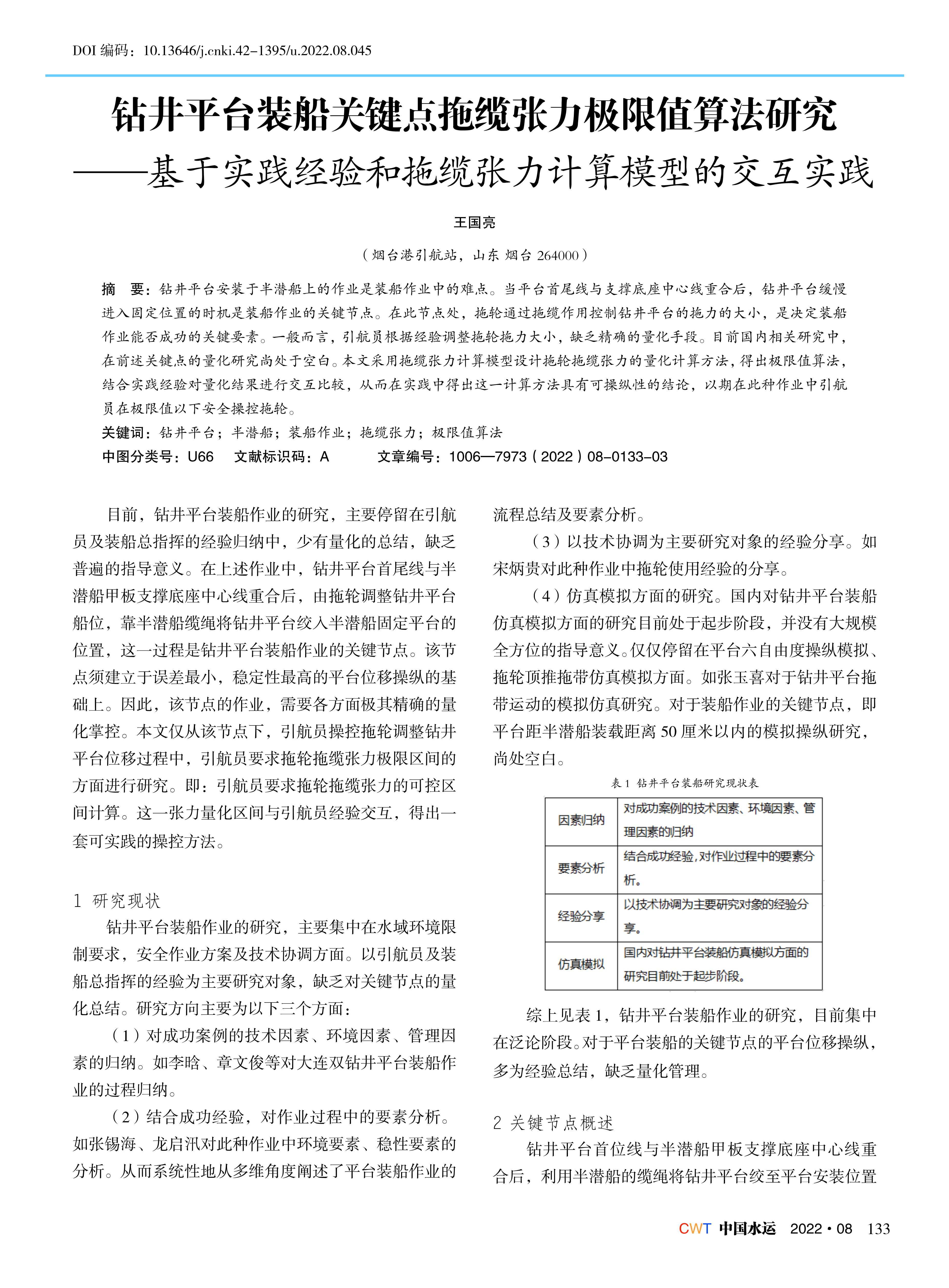 钻井平台装船关键点拖缆张力极限值算法研究——基于实践经验和拖缆张力计算模型的交互实践