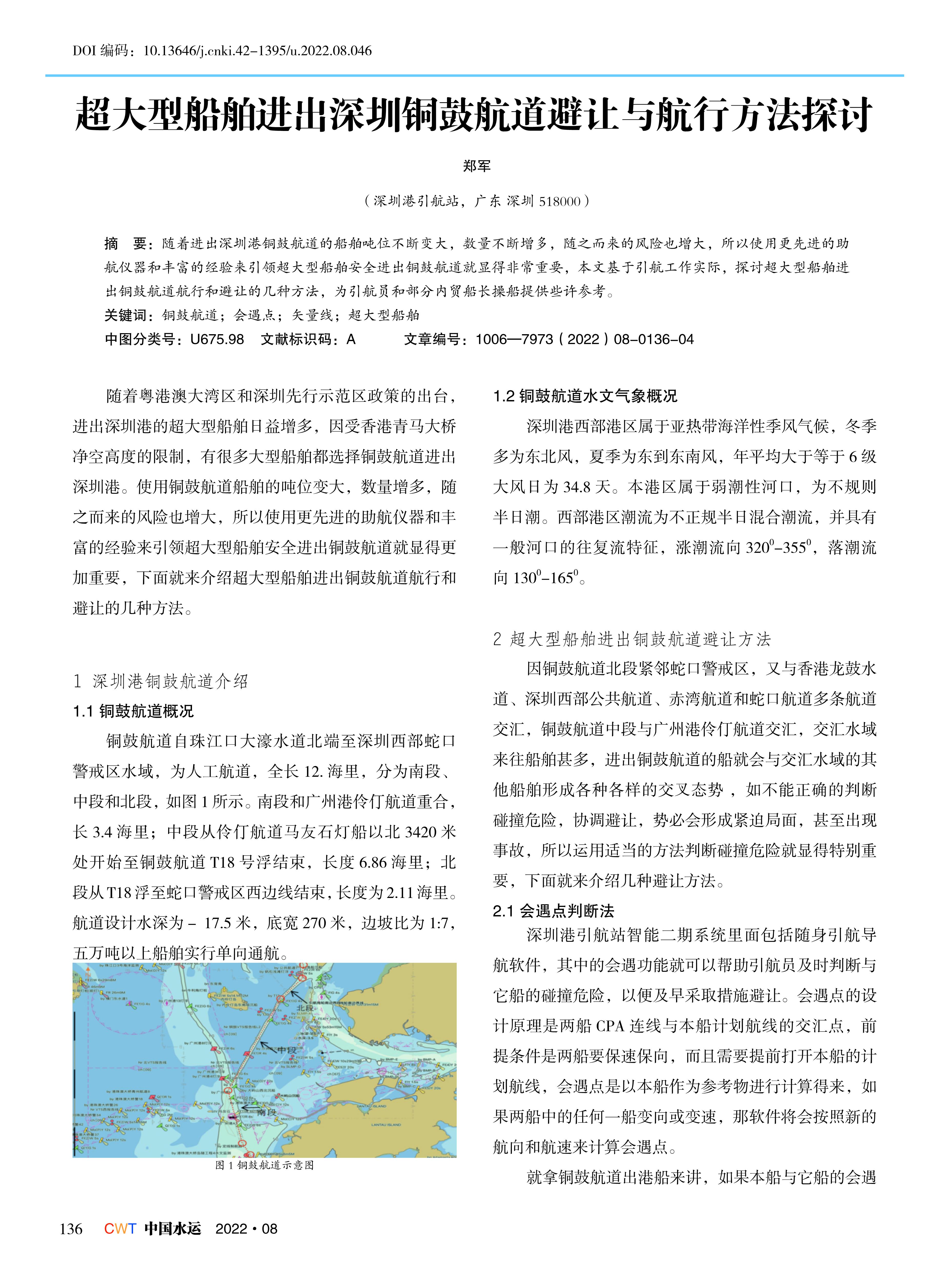 超大型船舶进出深圳铜鼓航道避让与航行方法探讨