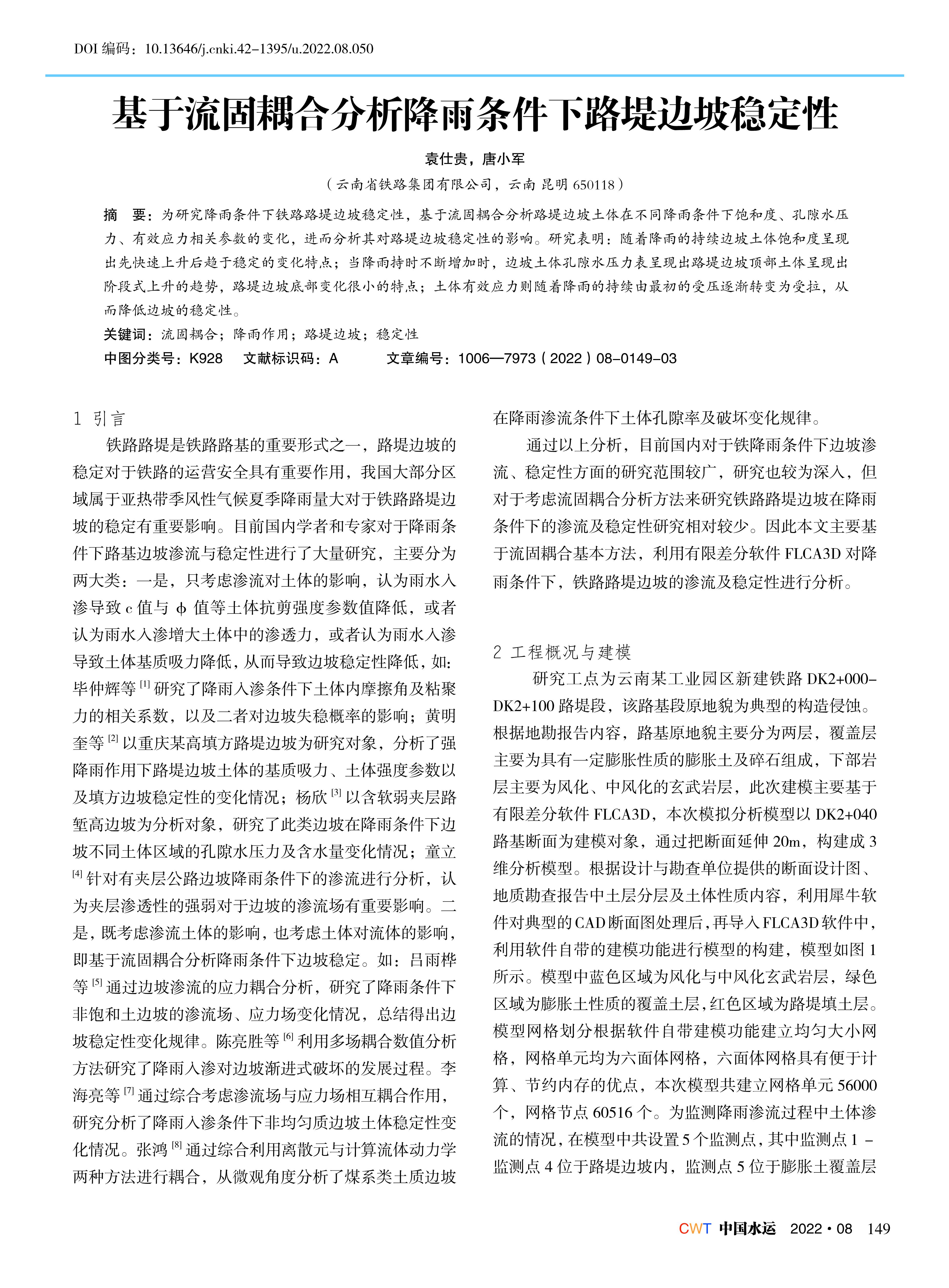 基于流固耦合分析降雨条件下路堤边坡稳定性