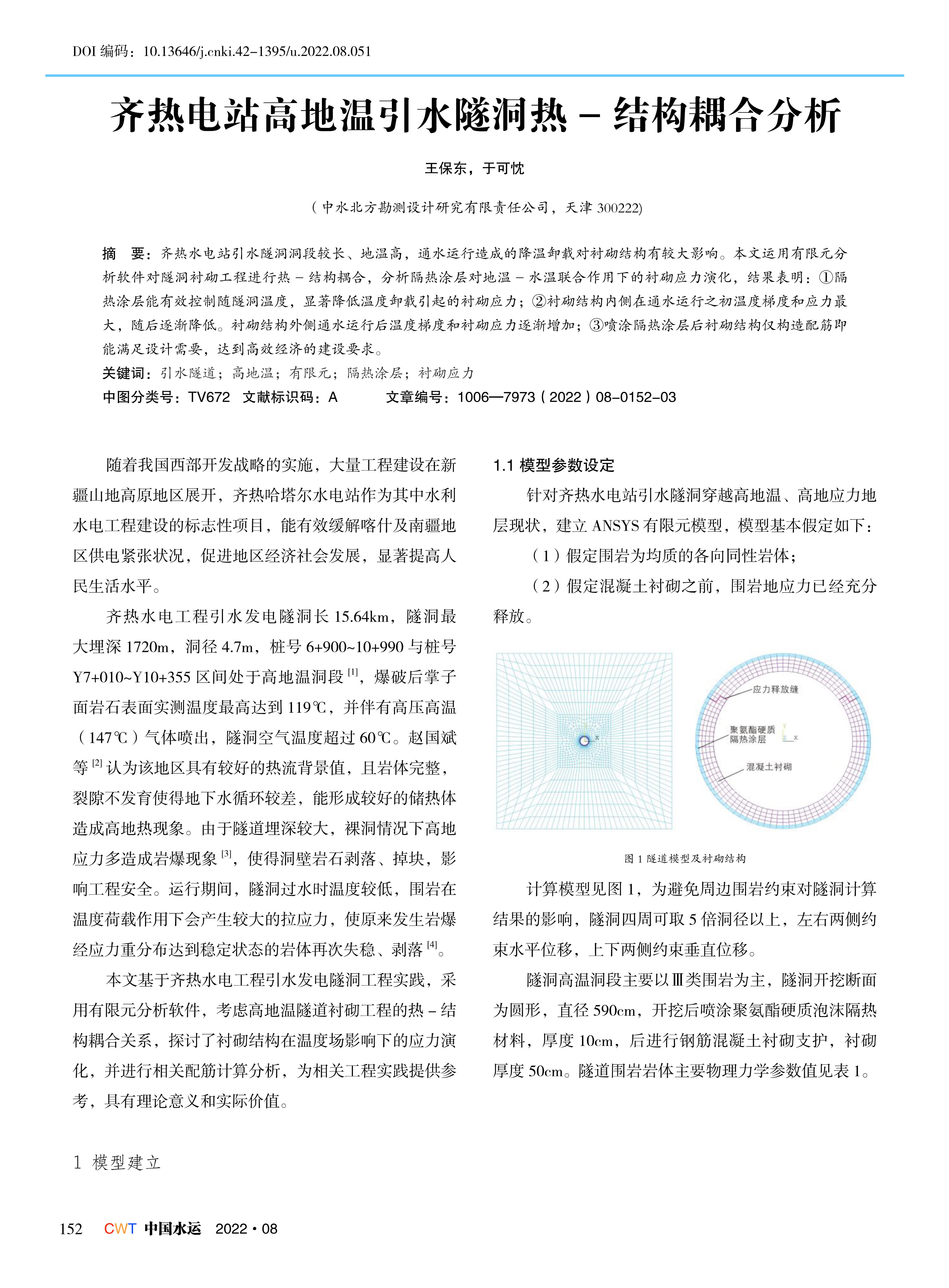 齐热电站高地温引水隧洞热 - 结构耦合分析