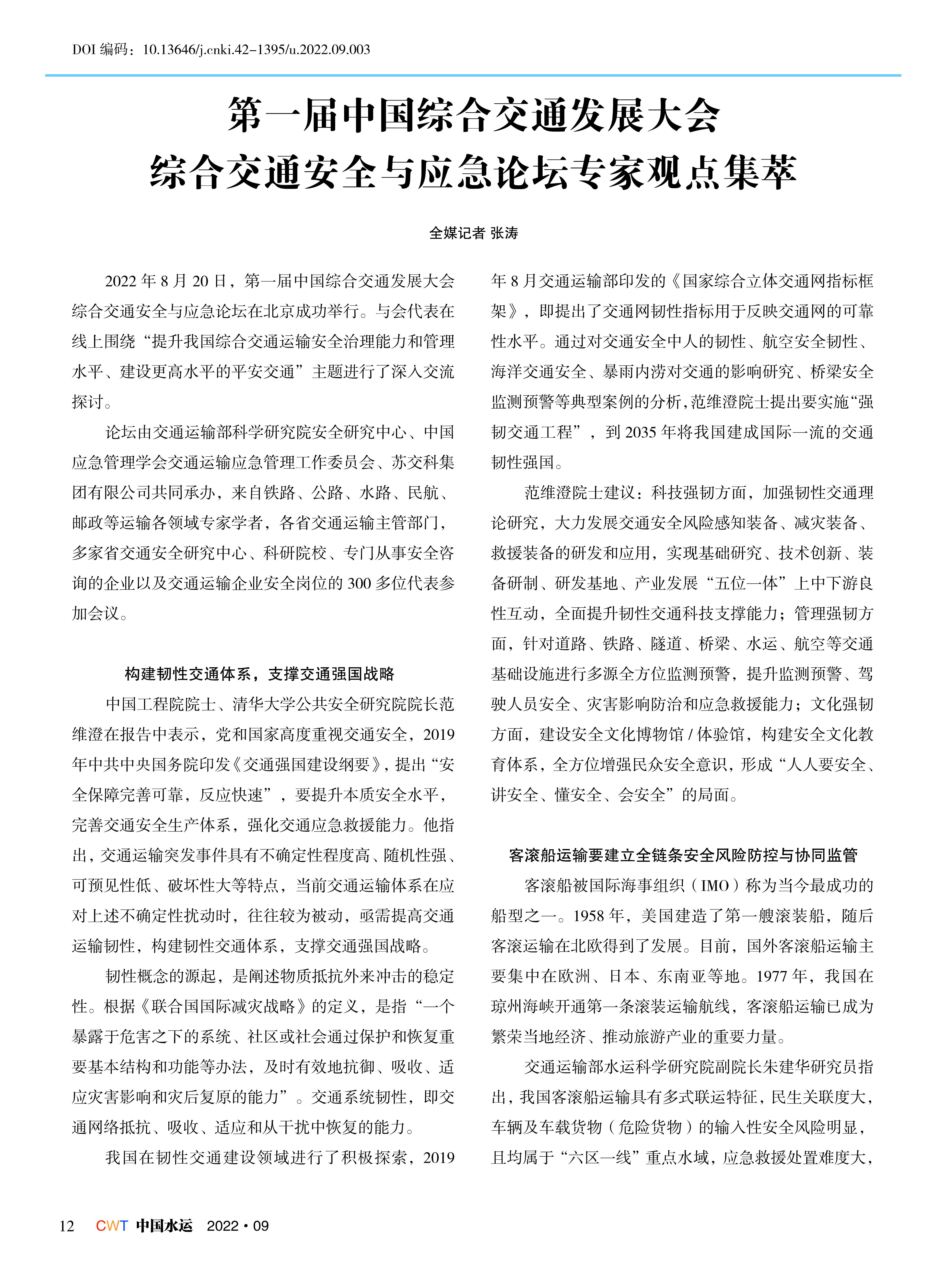 第一届中国综合交通发展大会综合交通安全与应急论坛专家观点集萃