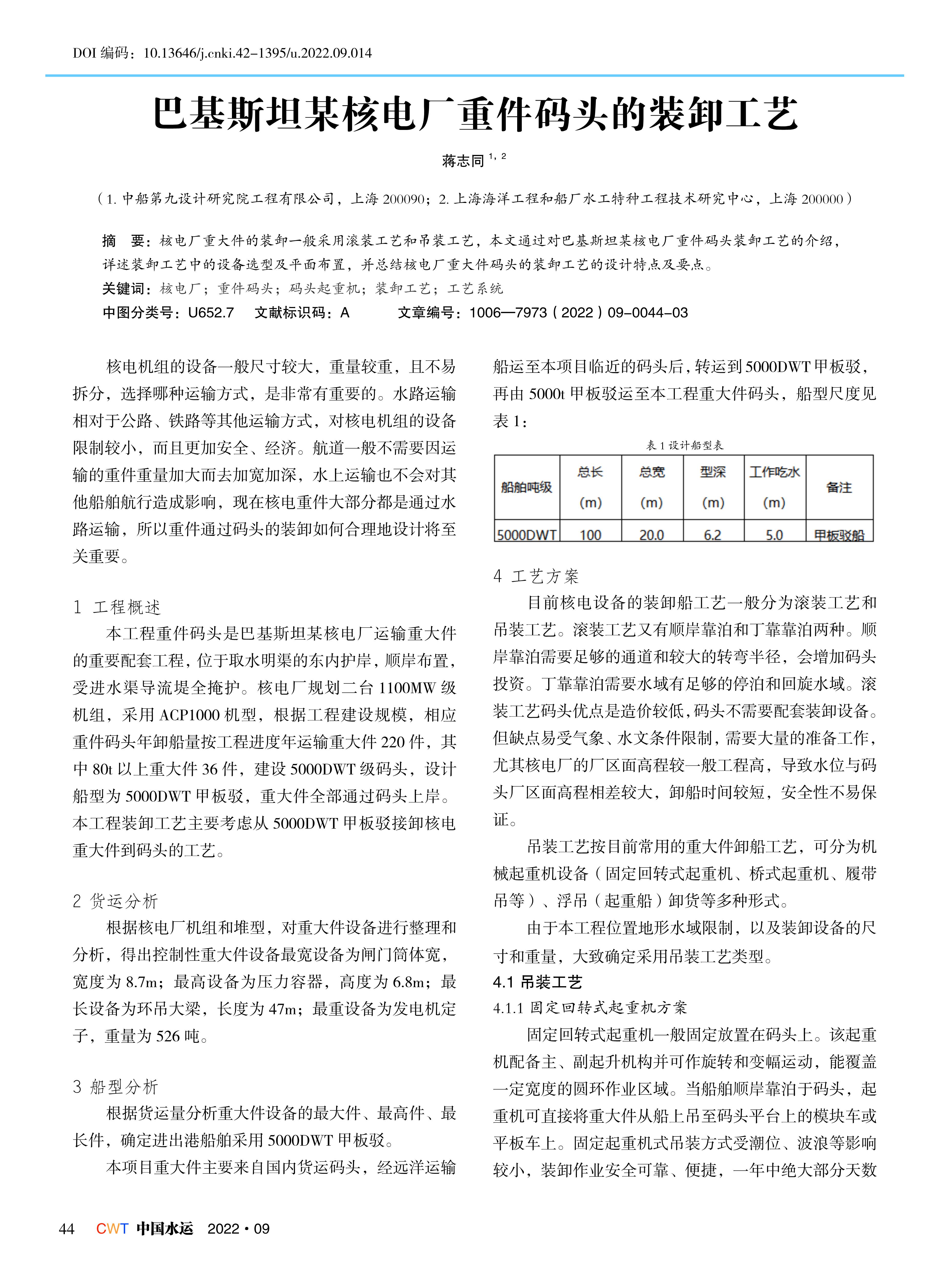 巴基斯坦某核电厂重件码头的装卸工艺