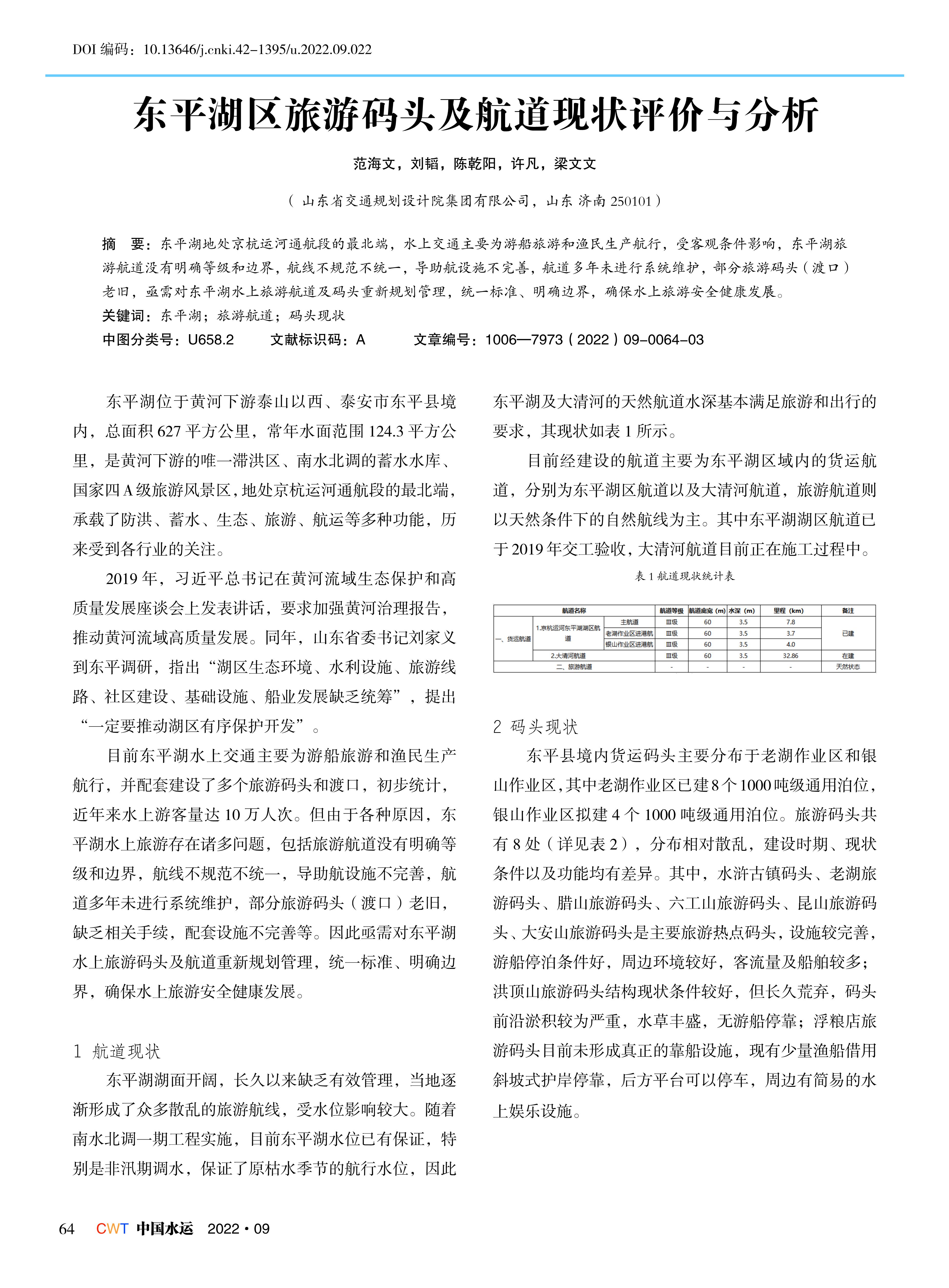 东平湖区旅游码头及航道现状评价与分析