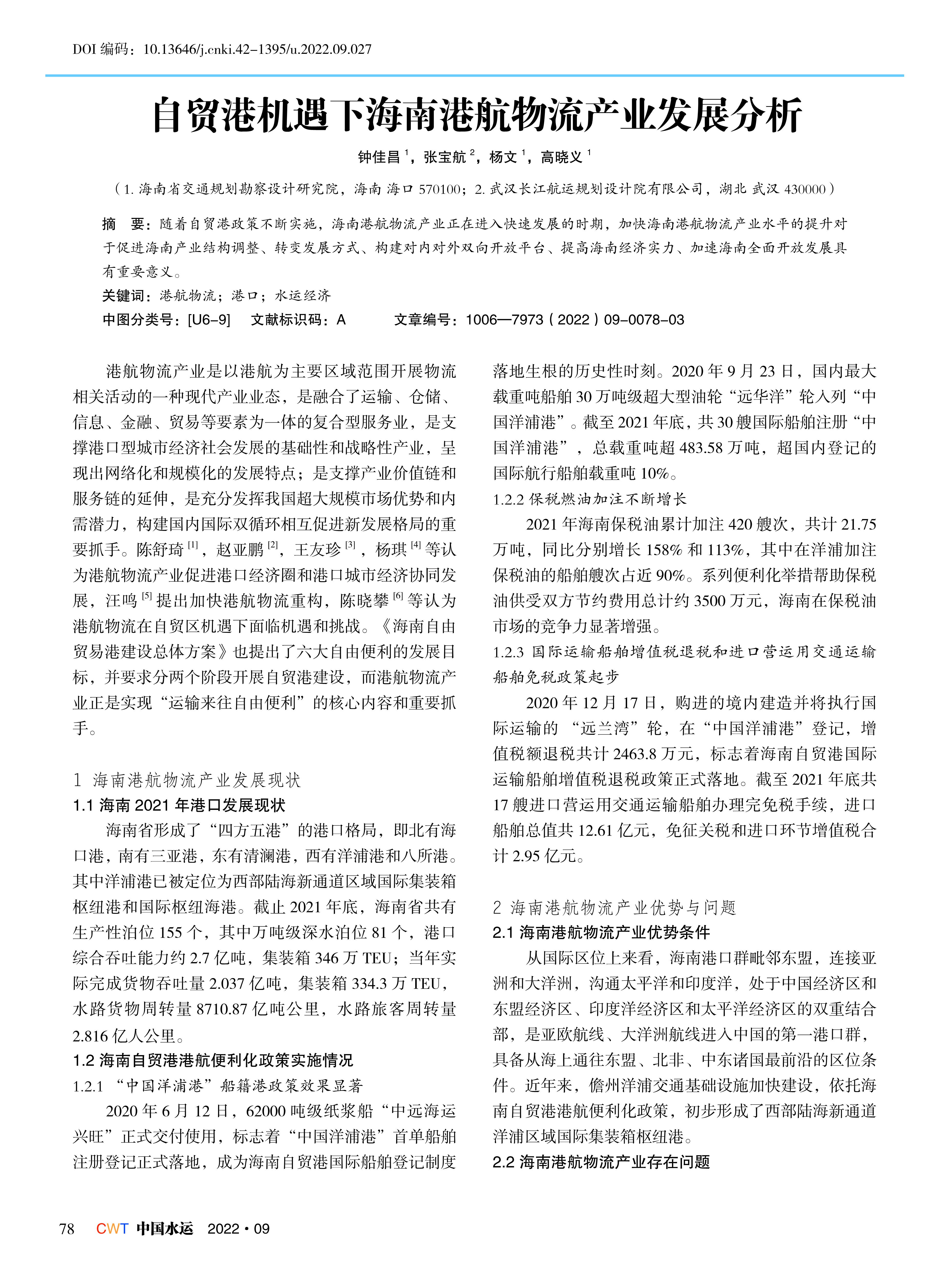 1. 海南省交通规划勘察设计研究院,海南 海口 570100;2. 武汉长江航运规划设计院有限公司,湖北 武汉 430000