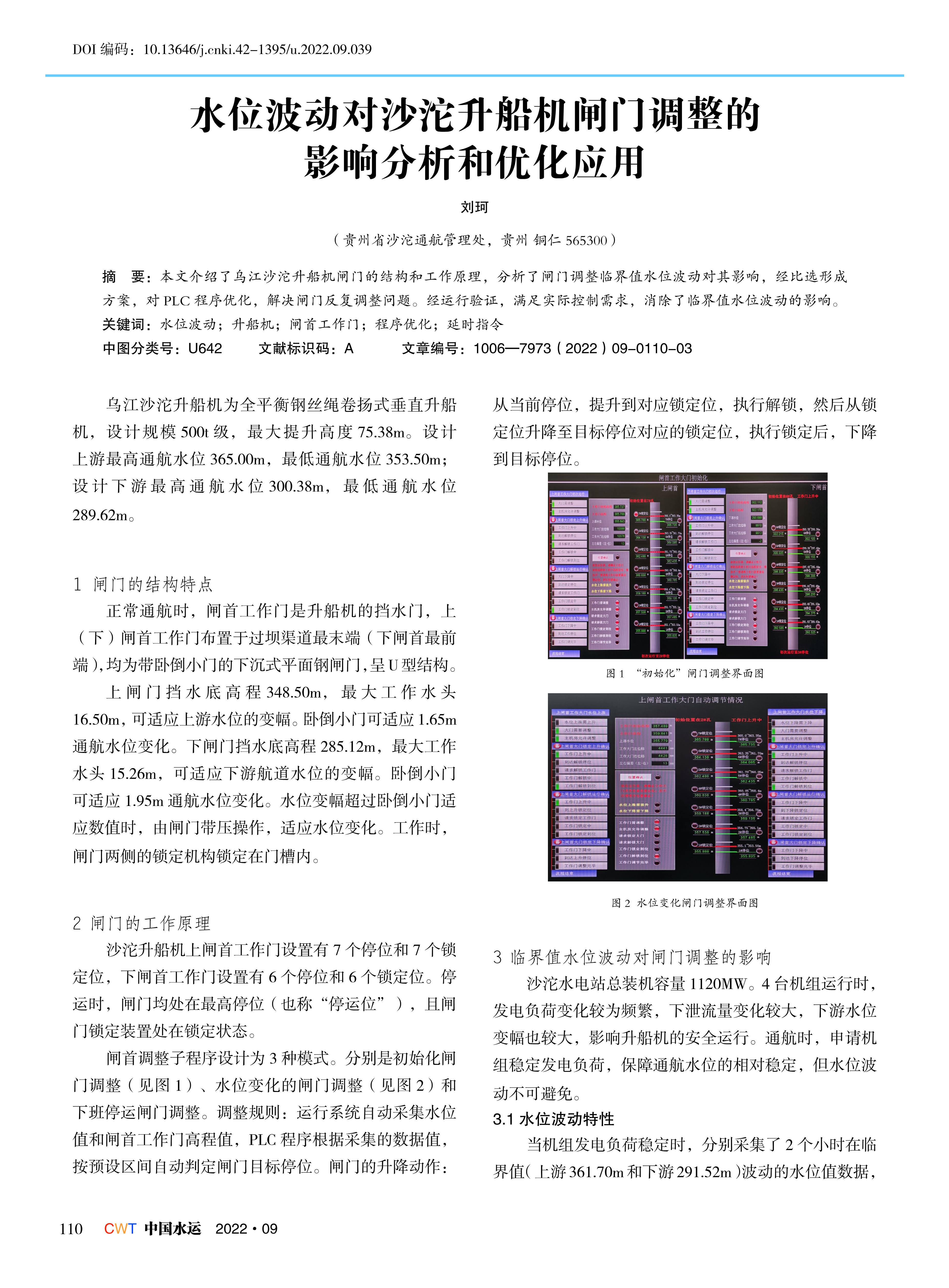 水位波动对沙沱升船机闸门调整的影响分析和优化应用