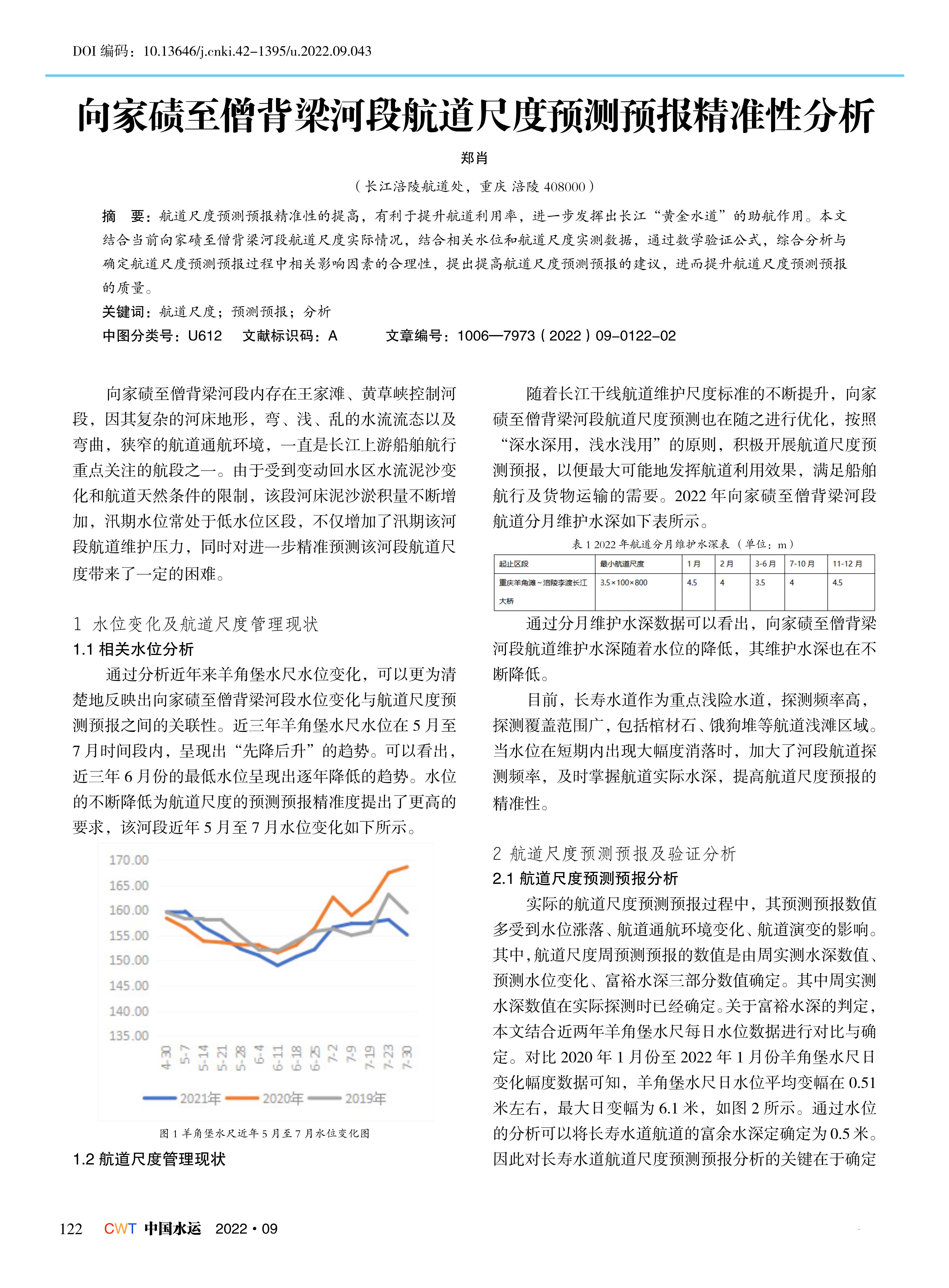 向家碛至僧背梁河段航道尺度预测预报精准性分析