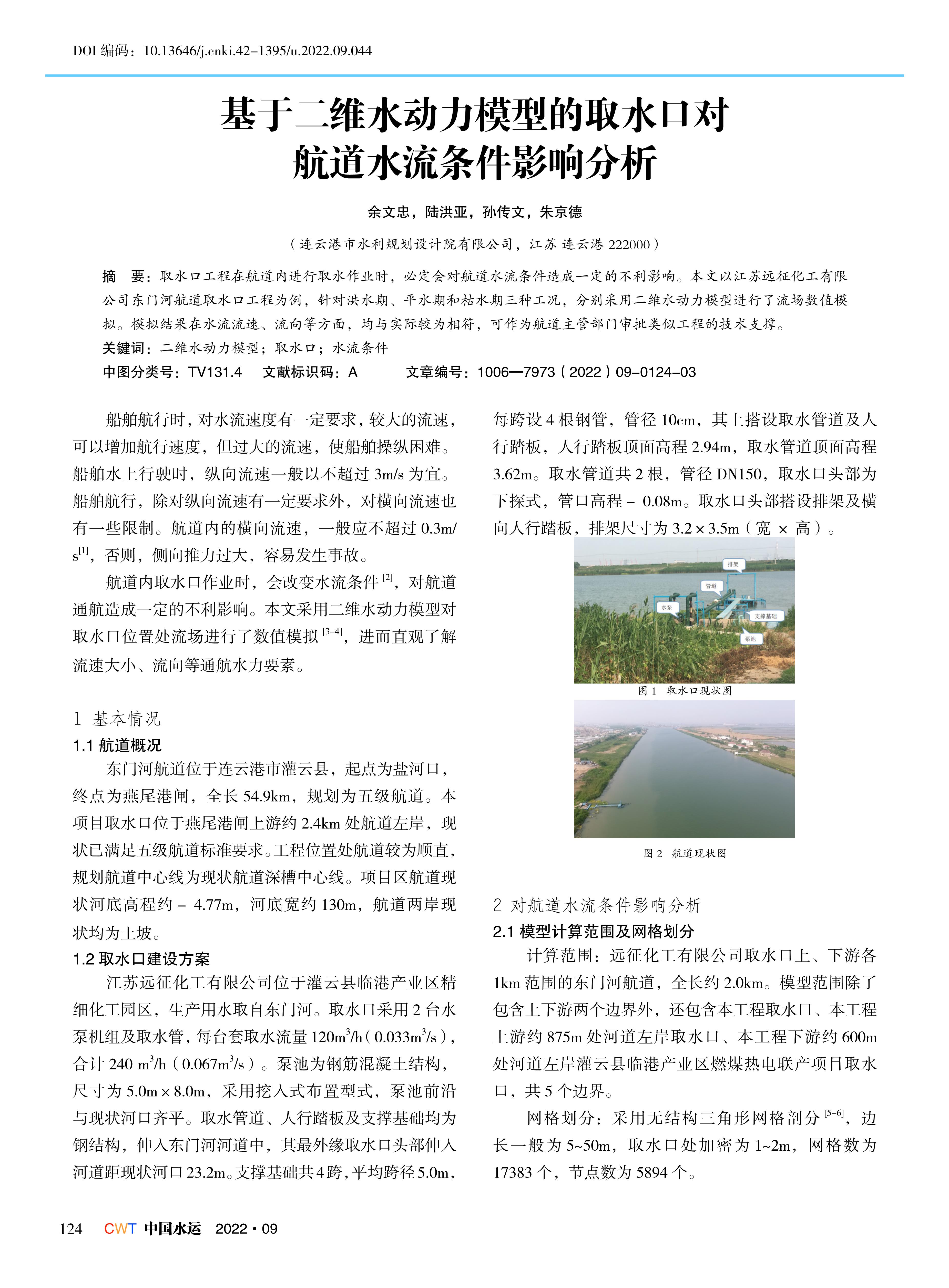 基于二维水动力模型的取水口对航道水流条件影响分析