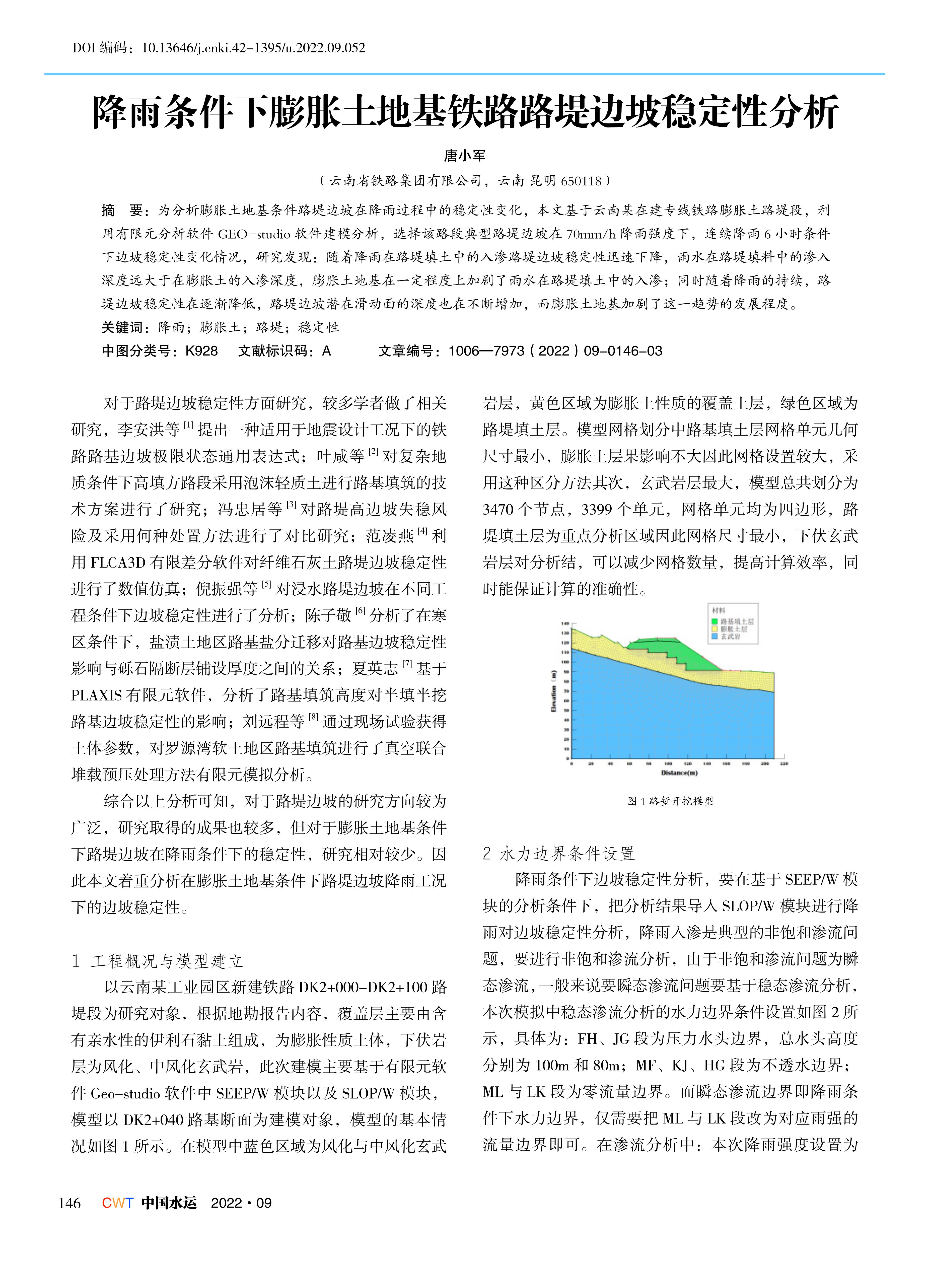 降雨条件下膨胀土地基铁路路堤边坡稳定性分析
