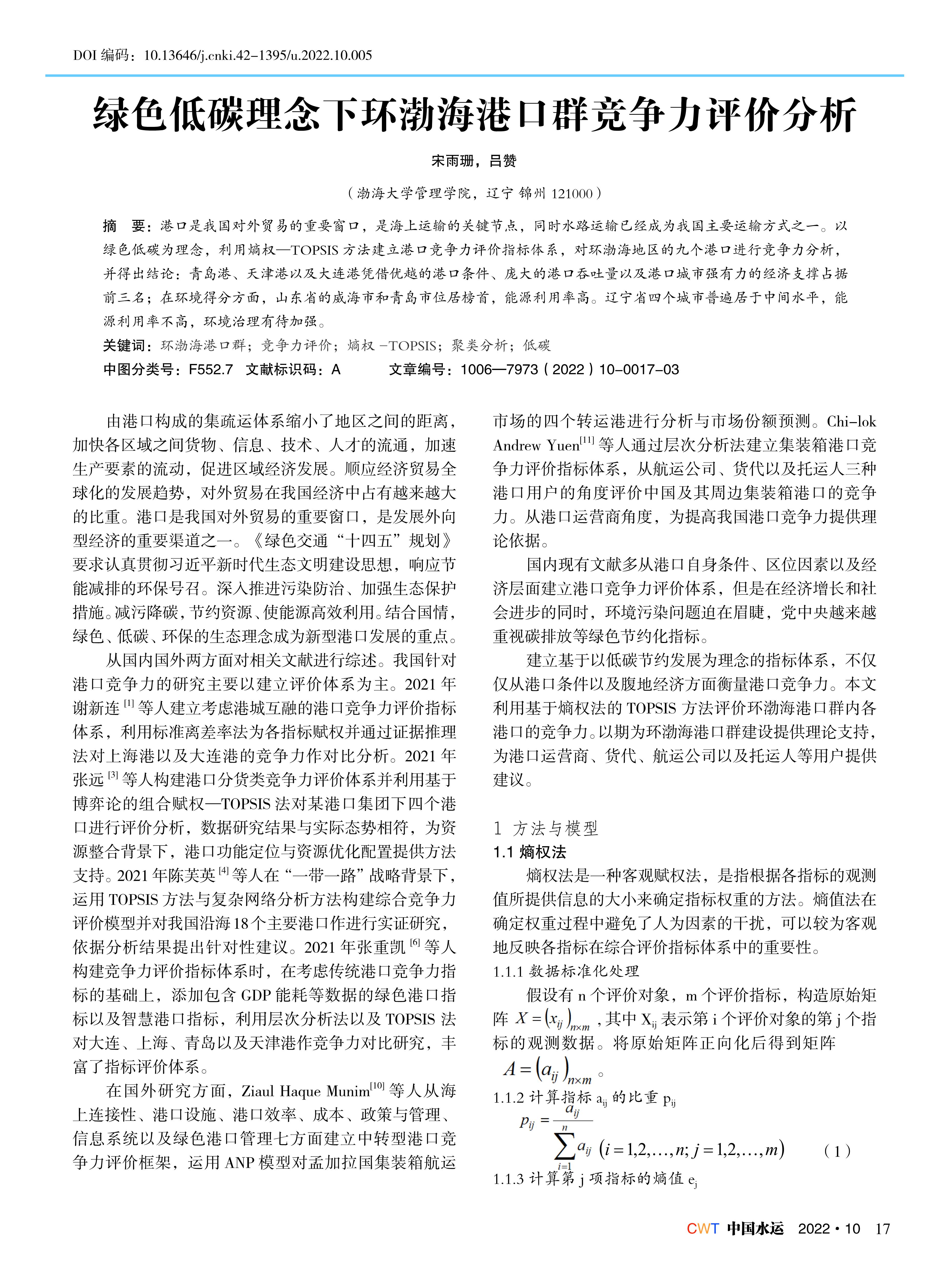 绿色低碳理念下环渤海港口群竞争力评价分析