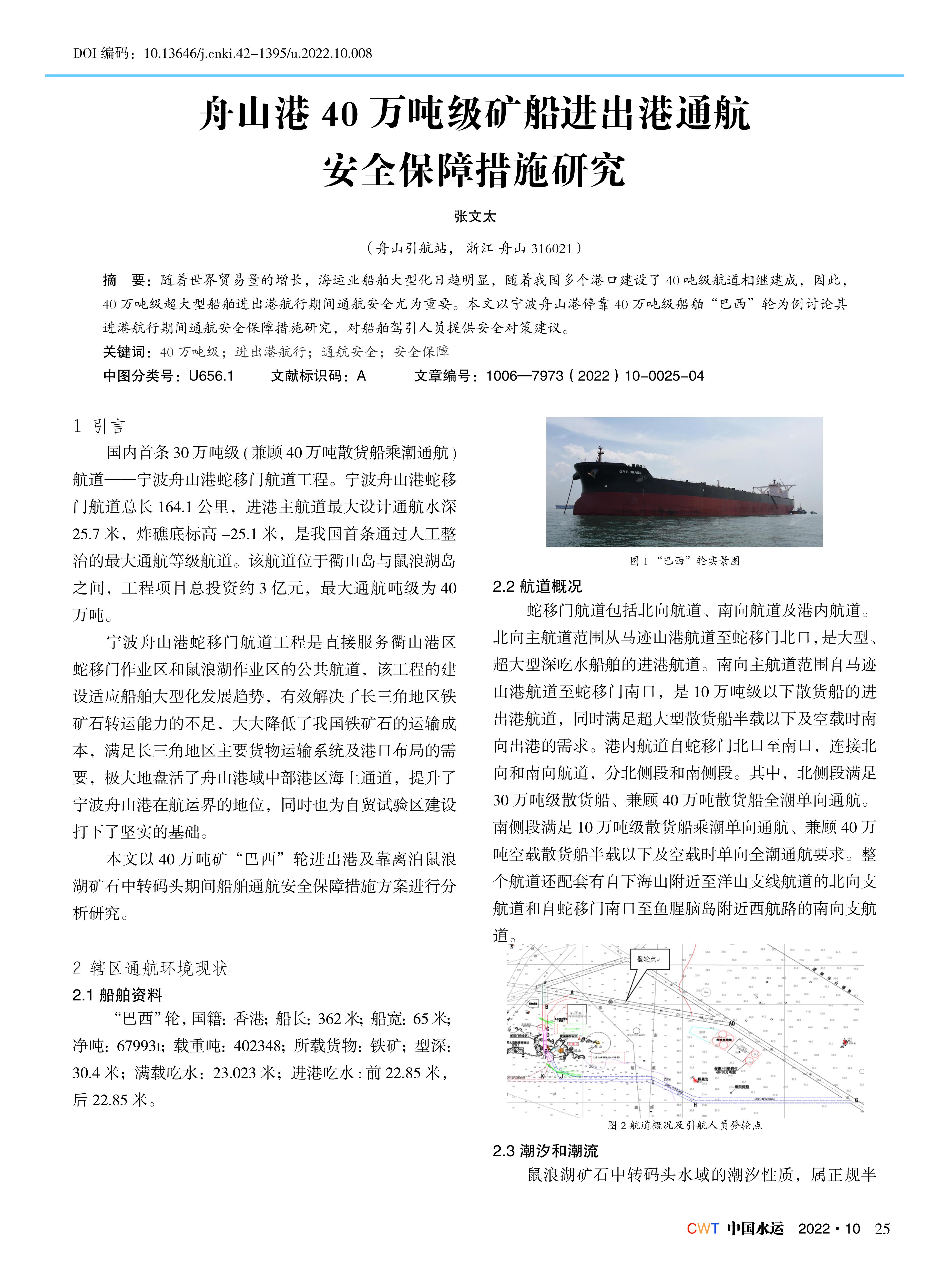舟山港 40 万吨级矿船进出港通航安全保障措施研究