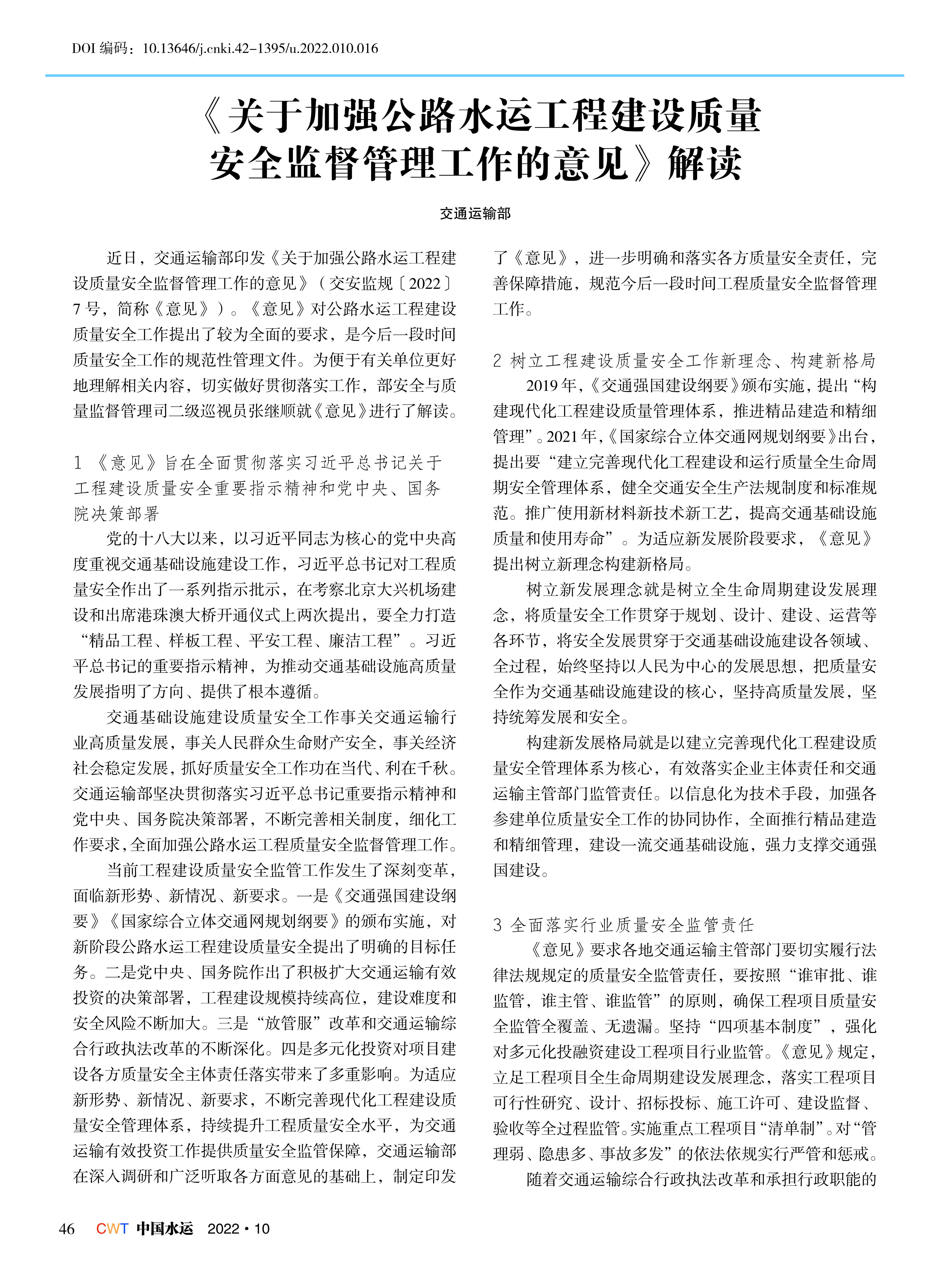 《关于加强公路水运工程建设质量安全监督管理工作的意见》解读