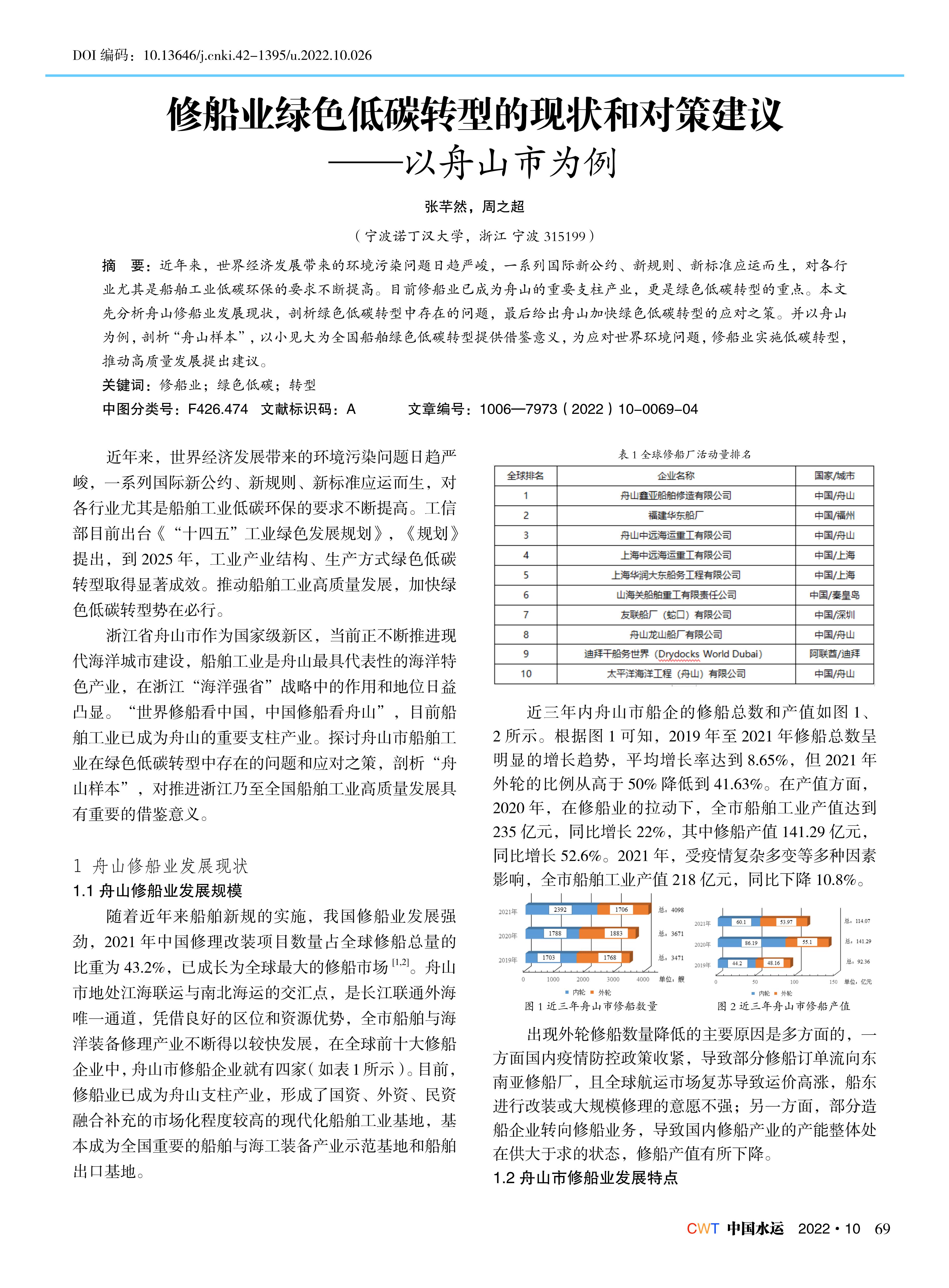 修船业绿色低碳转型的现状和对策建议——以舟山市为例