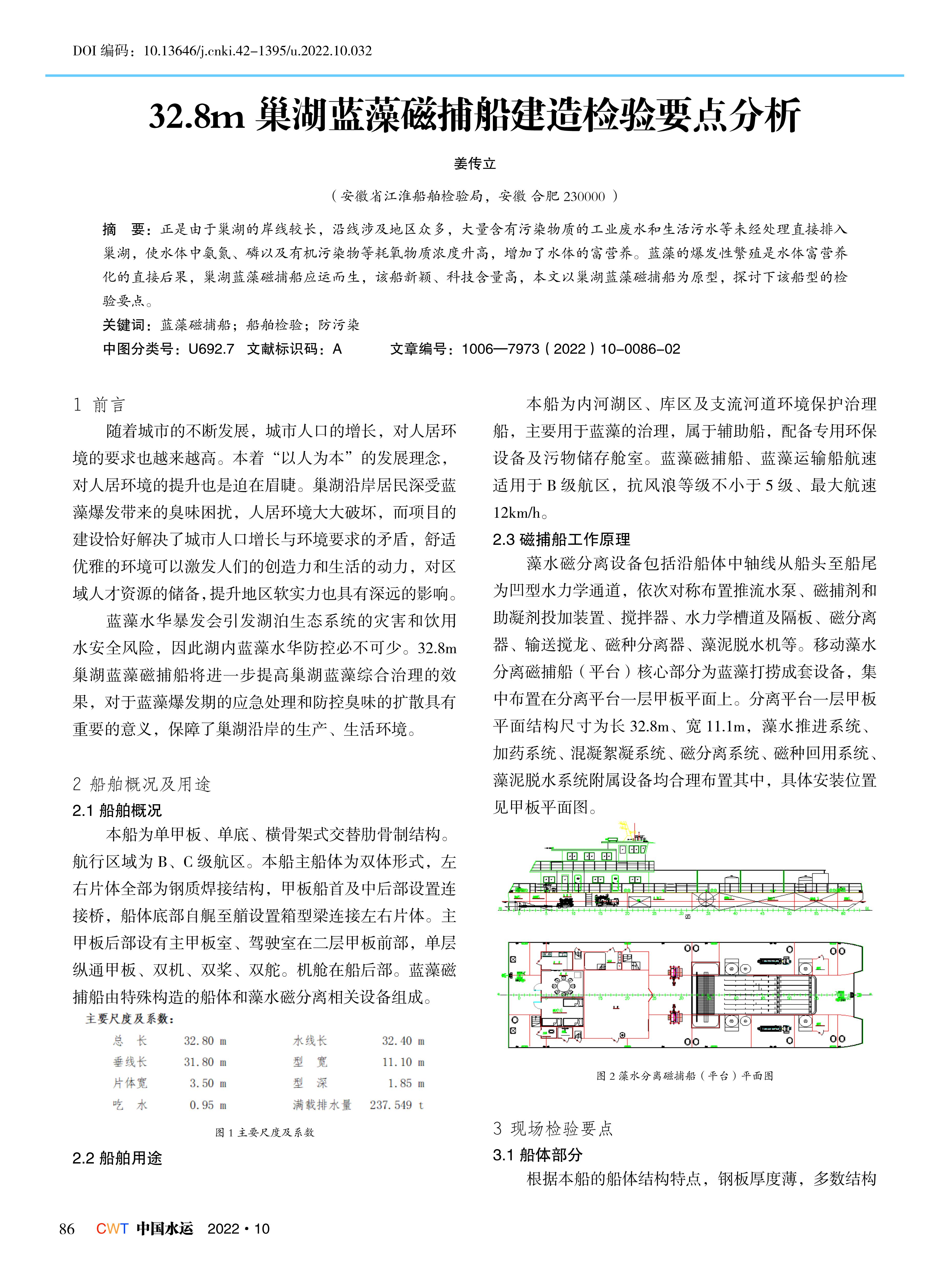 32.8m 巢湖蓝藻磁捕船建造检验要点分析