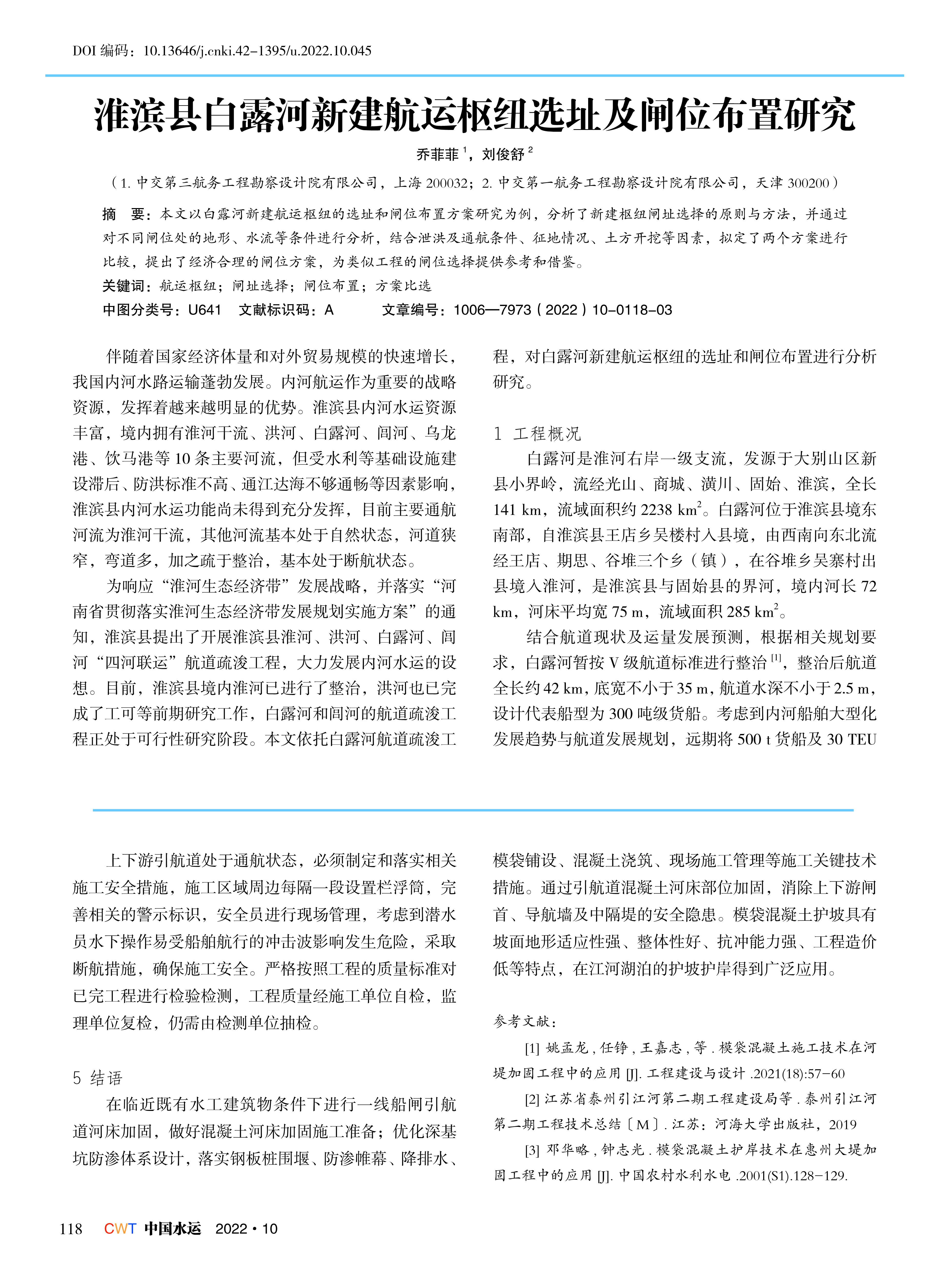 淮滨县白露河新建航运枢纽选址及闸位布置研究